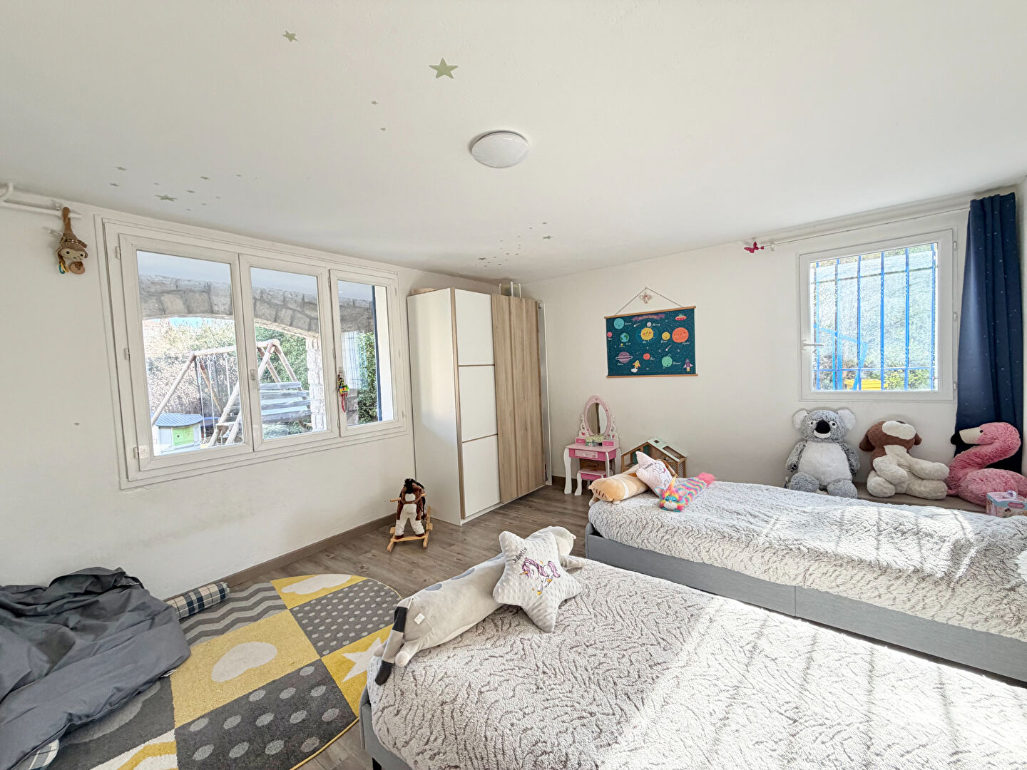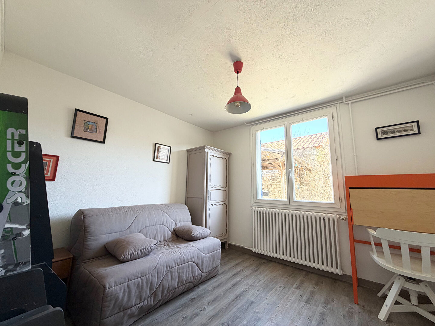 Édifiée en R+1, elle se compose au rez-de-chaussée d'une entrée desservant trois chambres, dont une spacieuse de 19 m² offrant la possibilité de créer une quatrième chambre ou un bureau, ainsi qu'une salle d'eau avec WC et une buanderie.