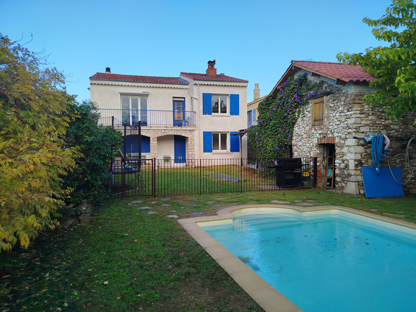 À l'extérieur, vous profiterez d'un agréable espace comprenant une grande piscine clôturée (liner récent de 2 ans), une dépendance en pierre de 20 m² à aménager, une terrasse, le tout sur une parcelle de 640 m².
