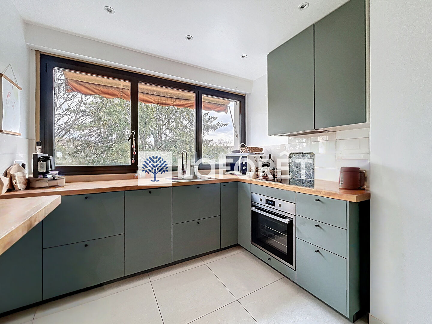 L'entrée s'ouvre directement sur le séjour, prolongé par un large balcon permettant d'accueillir table et chaises, idéal pour profiter pleinement du cadre naturel environnant. La cuisine spacieuse et entièrement équipée s'intègre harmonieusement à l'ensemble.