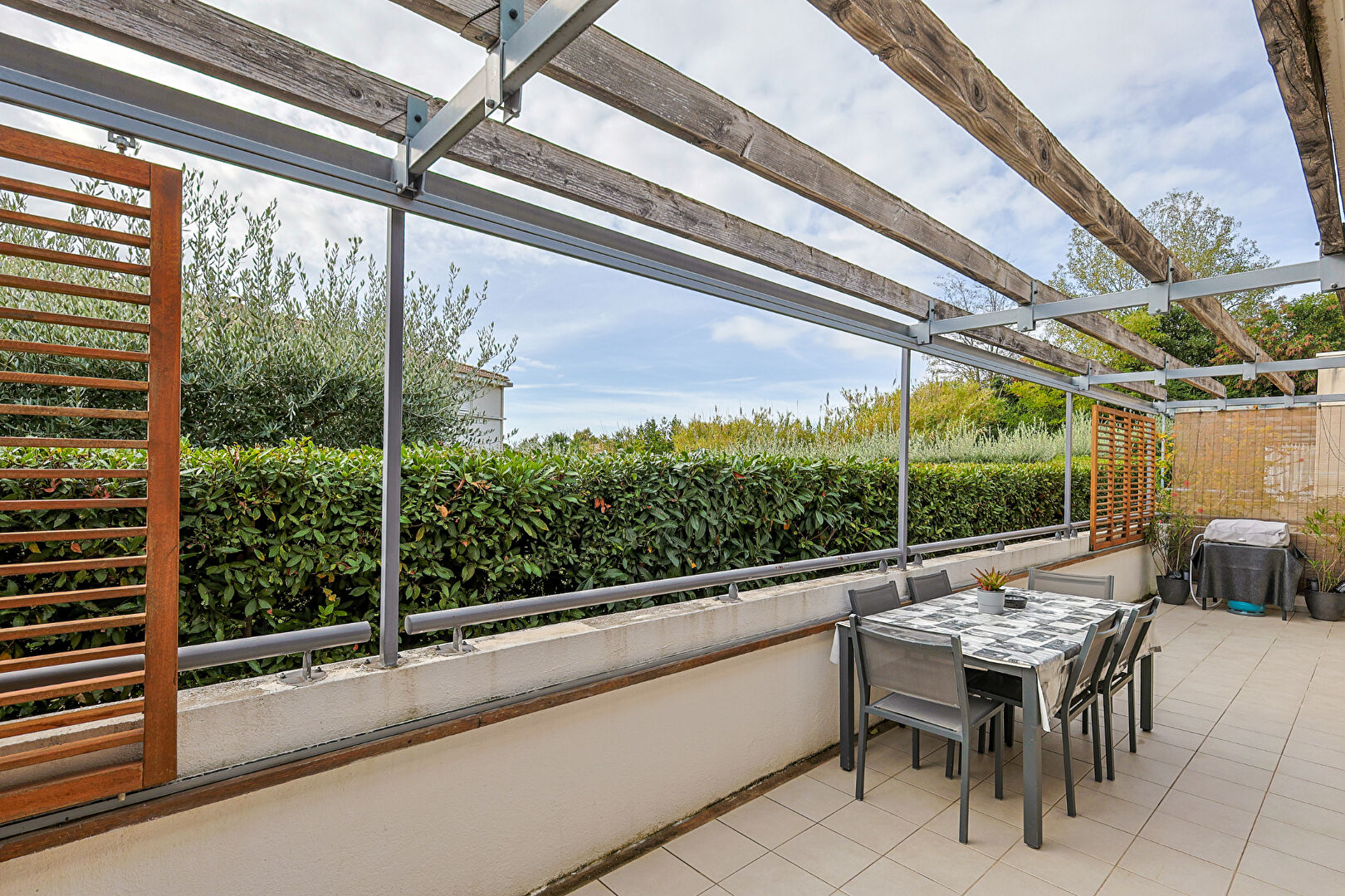 À l'extérieur, deux terrasses une 28 m² et une autre de 22m² permettent de profiter de l'ensoleillement et du calme: l'une exposée plein sud, l'autre plein nord, pour varier les ambiances selon vos envies. Vous profiterez également d'un box double avec prise électrique, un atout rare sur le secteur.