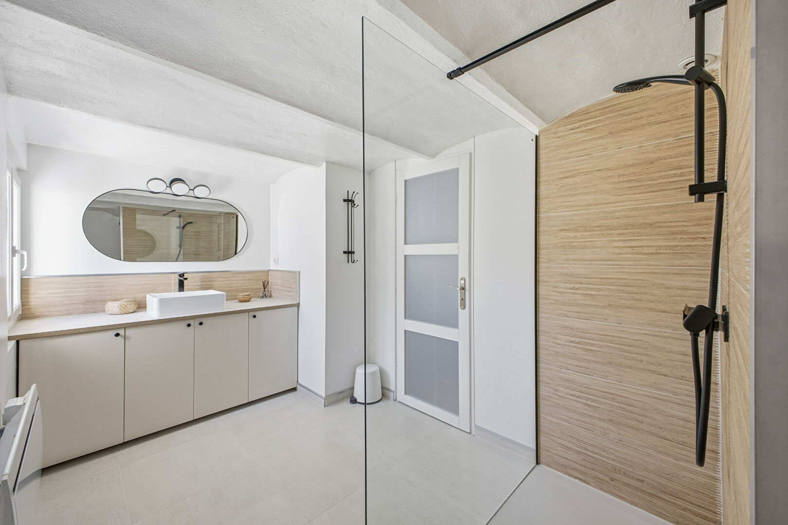Exposée plein sud et baignée de lumière, la villa se compose à l'étage d'une belle pièce de vie de 40 m² ouvrant sur une terrasse de 30 m², d'une cuisine ouverte entièrement équipée, d'une chambre et d'un W.C. L'ensemble séduit par ses volumes généreux et son cachet.