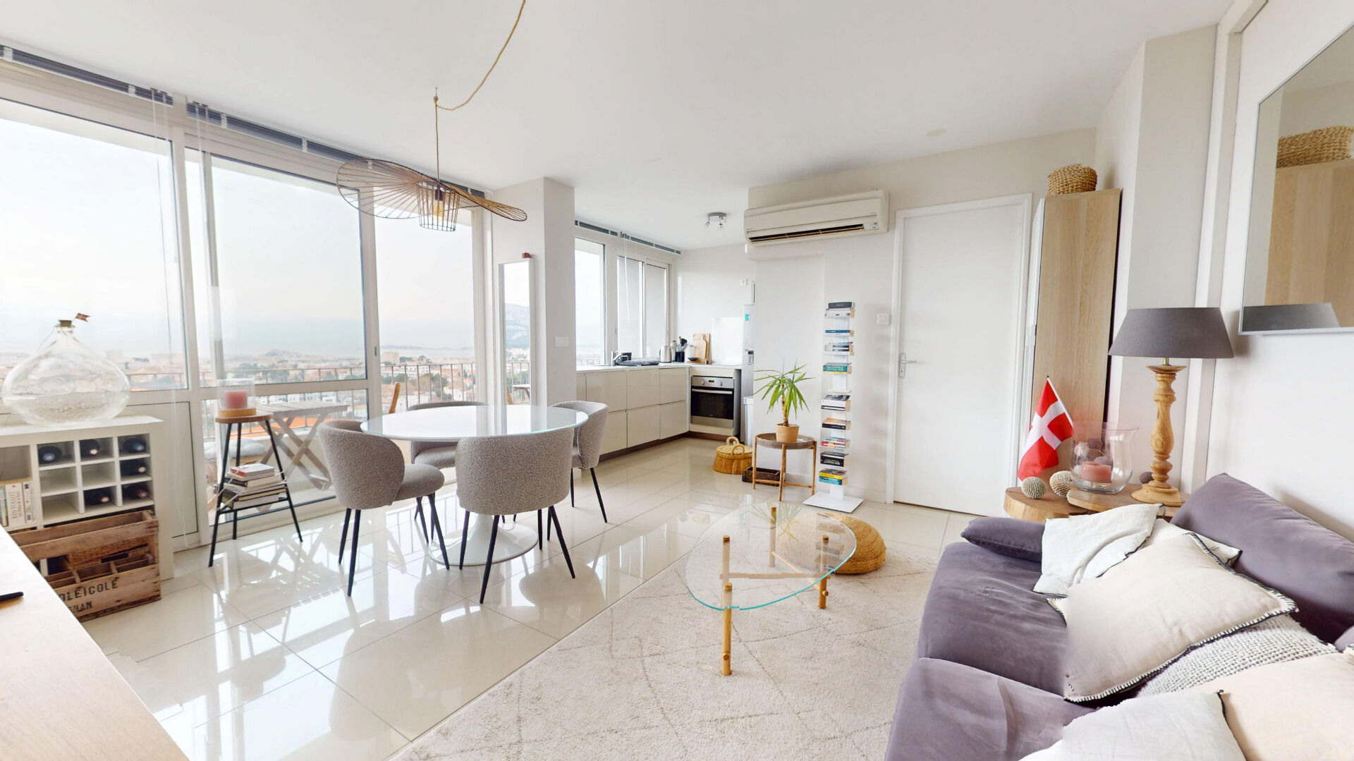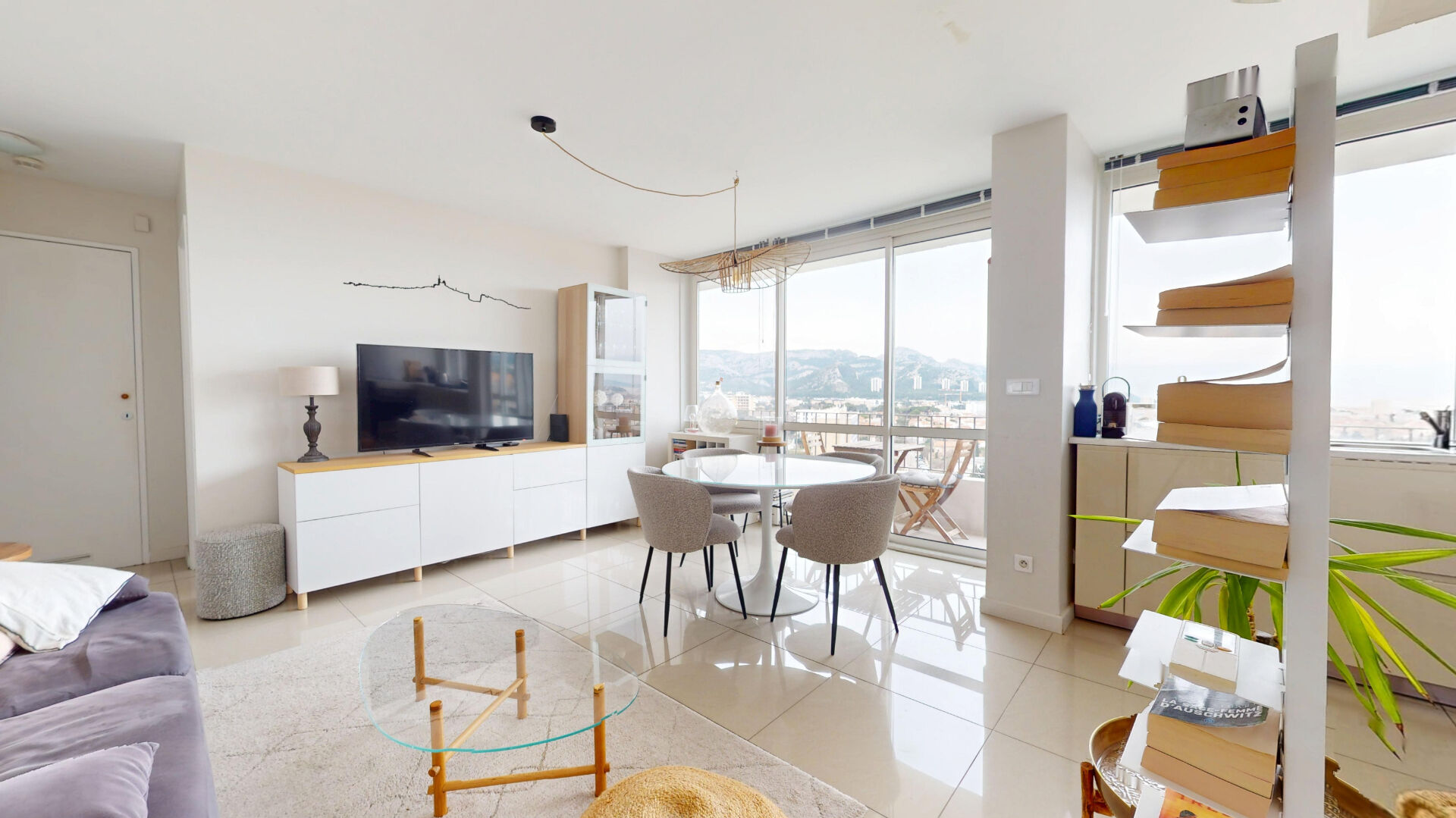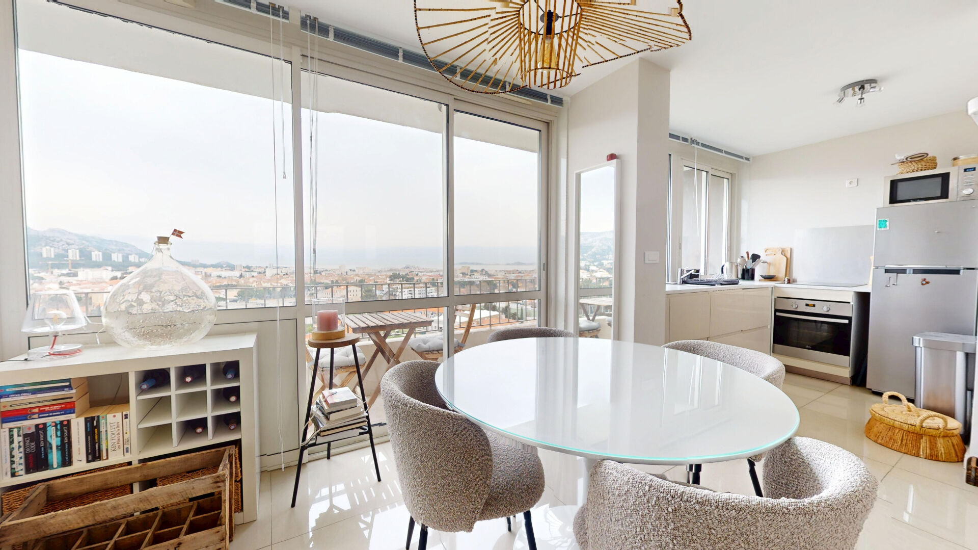 Son atout majeur : une vue mer panoramique exceptionnelle, entièrement dégagée, allant de la Basilique Notre-Dame de la Garde jusqu'au Massif des Calanques, en passant par les Îles du Frioul. Depuis le balcon de 8,5 m², le spectacle est quotidien, entre mer, reliefs et lumière méditerranéenne.