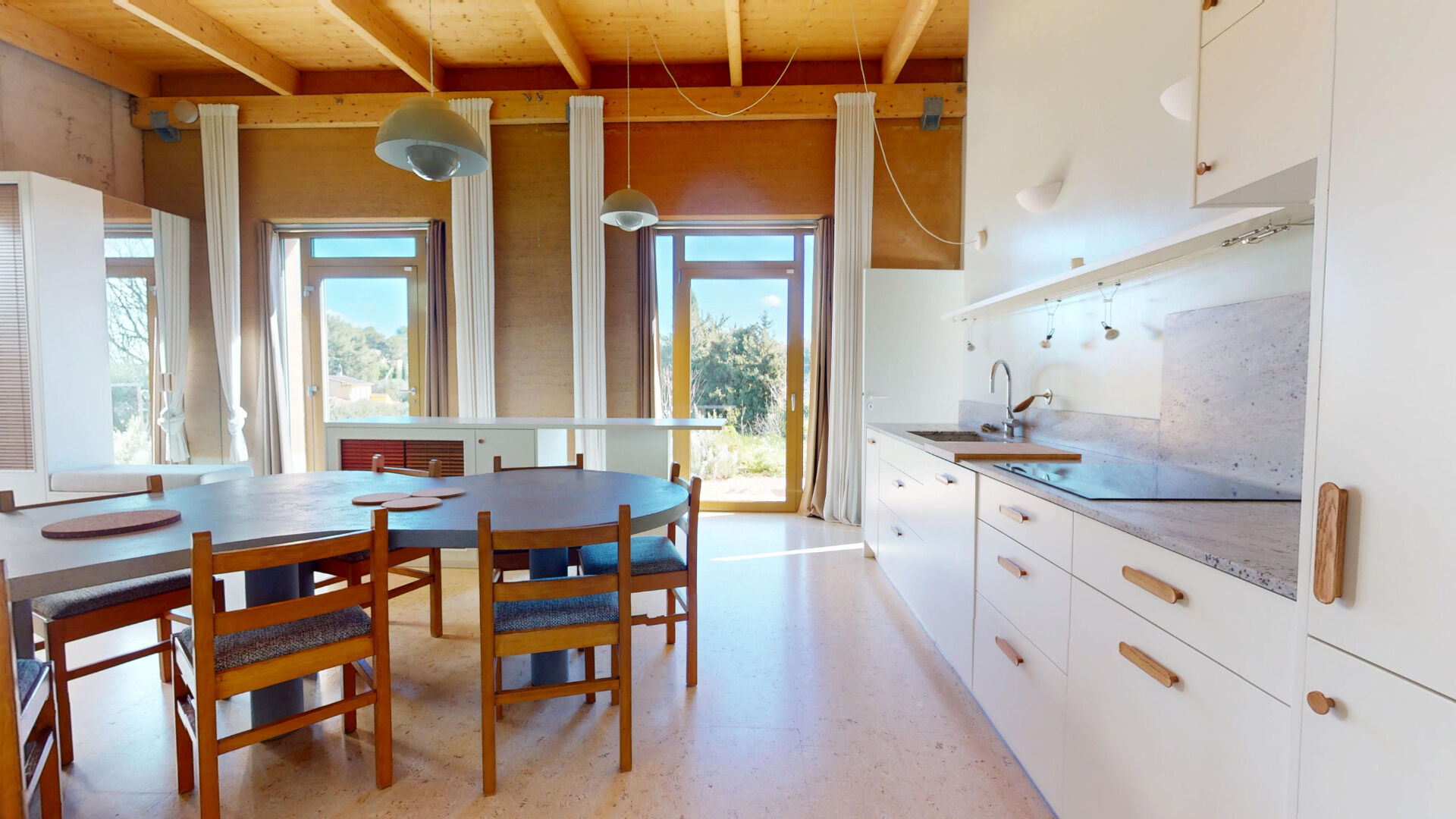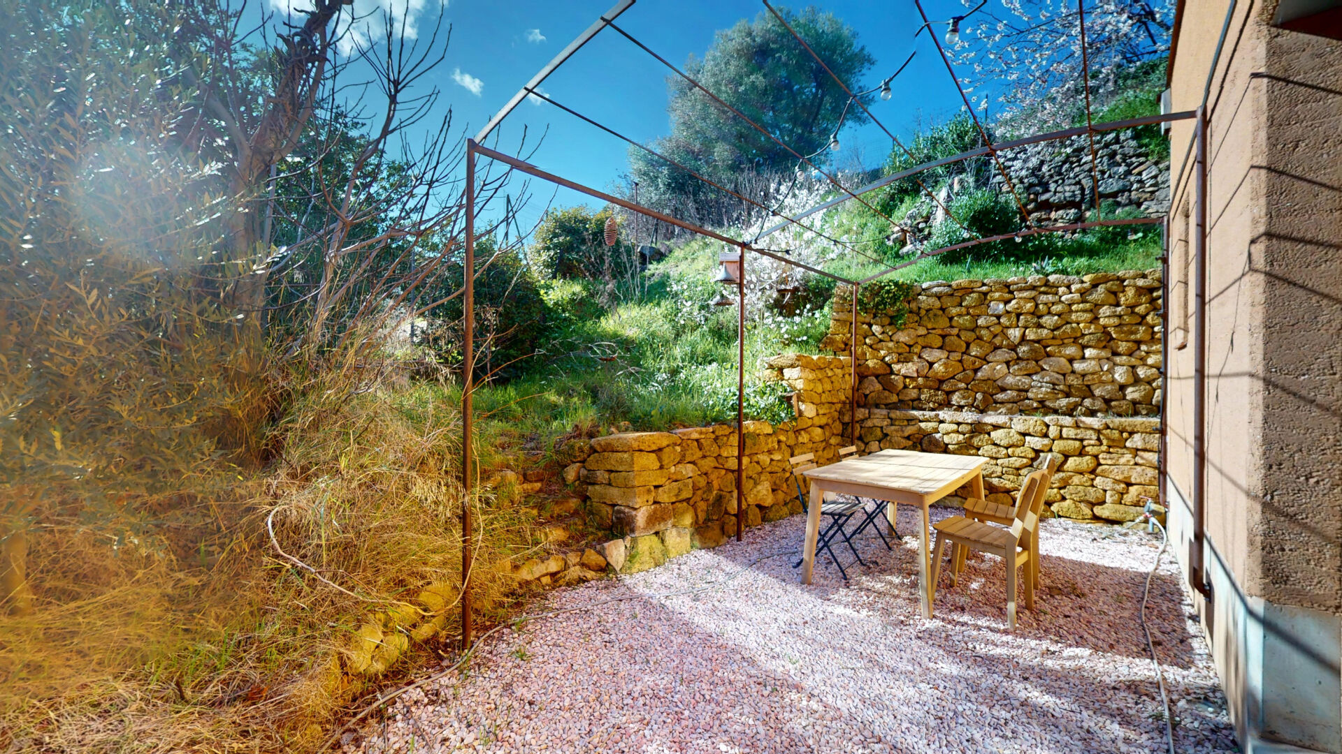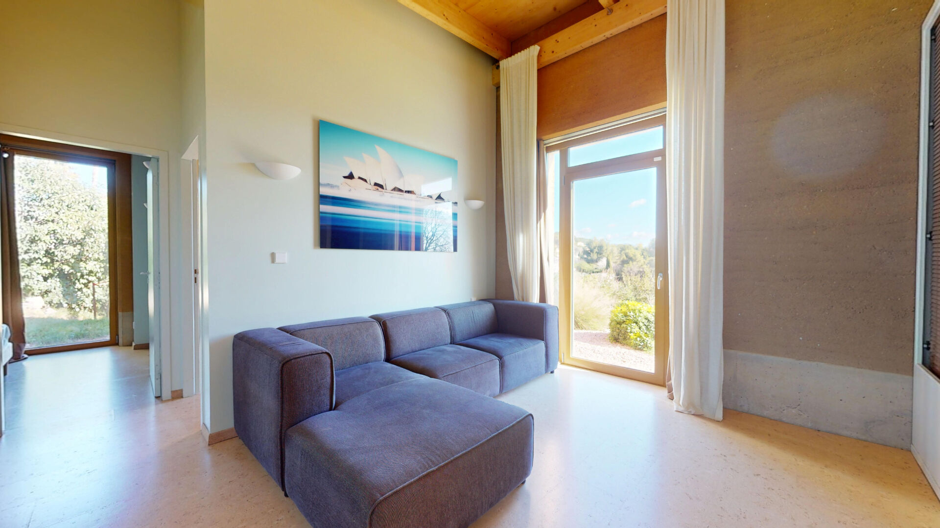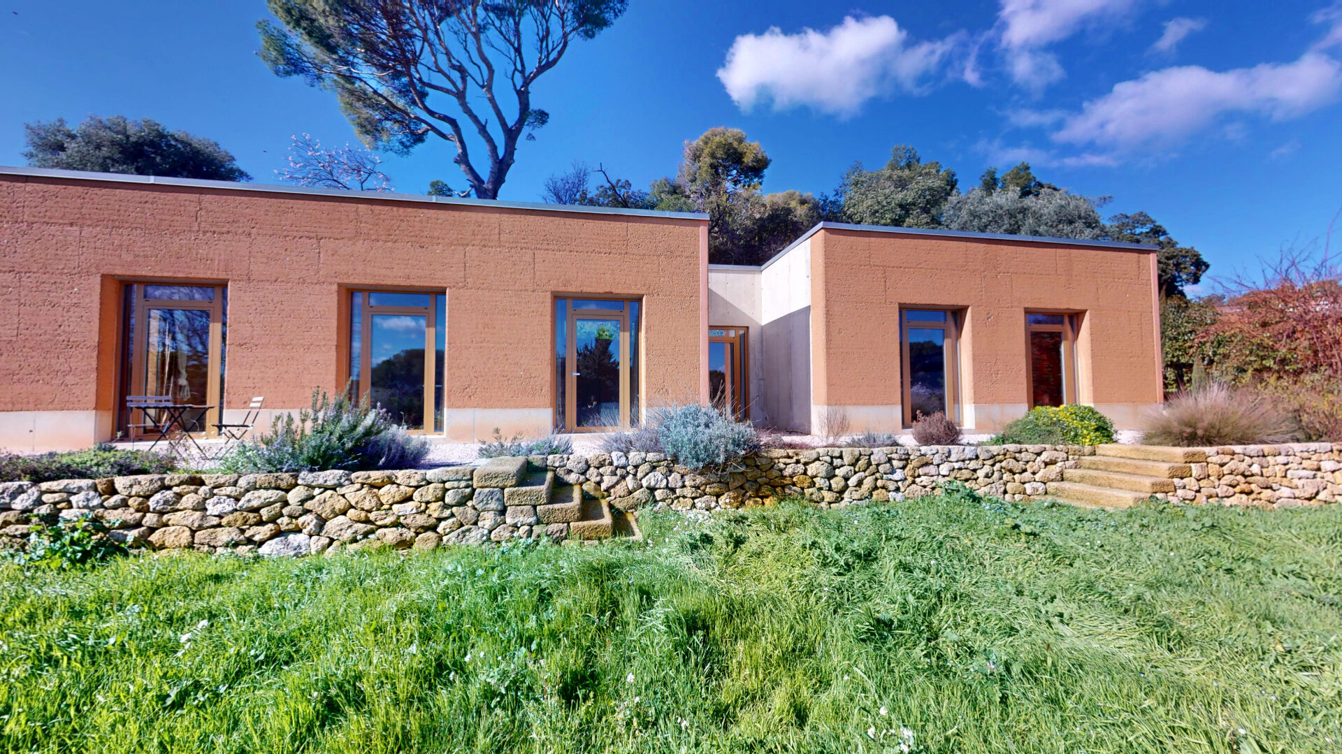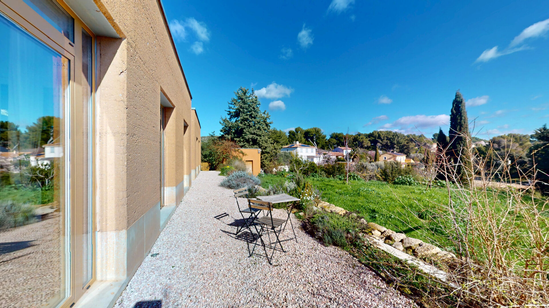 Conçue pour une vie tournée vers la nature, elle s'ouvre sur un superbe jardin paysager de plus de 1000 m², ponctué d'oliviers, de cyprès et de murs en pierres sèches. L'ensemble crée une atmosphère méditerranéenne élégante et apaisante, avec une vue dégagée sur les collines du massif de la Chaîne de l'Étoile, sans aucun vis-à-vis.
