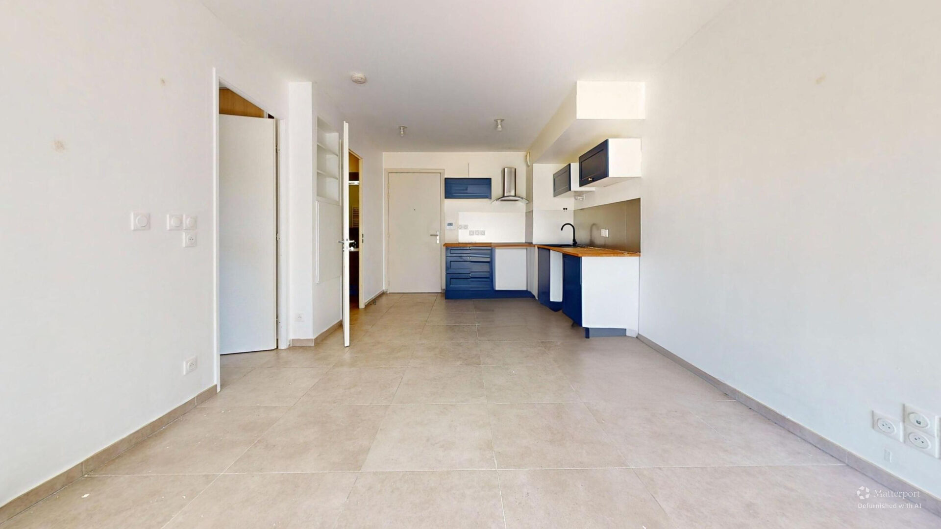 Le logement se compose d'un séjour-cuisine ouvert de 22,5 m² prolongé par le balcon, d'une grande chambre de 13,5 m² et d'une salle d'eau avec WC. Une place de parking en sous-sol complète le bien.