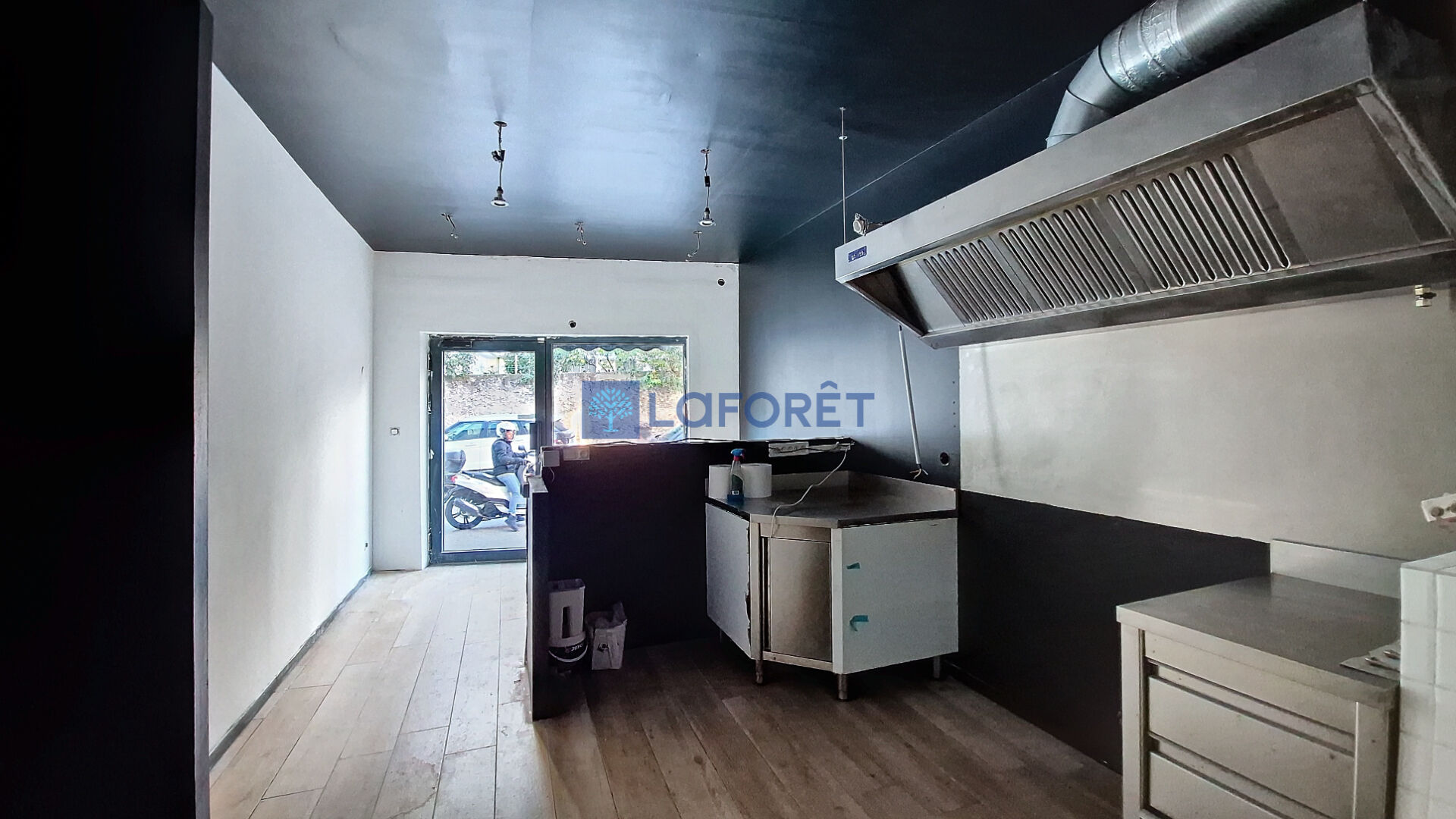 Aménagements : Espace de vente à l'avant, équipé d'une arrière-cuisine fonctionnelle et de sanitaires (idéal restauration/snack).