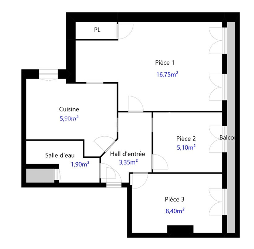 L'appartement se compose d'un séjour attenant à une cuisine semi ouverte, d'une salle de douche avec WC, d'une chambre et d'une chambre / bureau. Le bien dispose aussi d'un balcon filant.