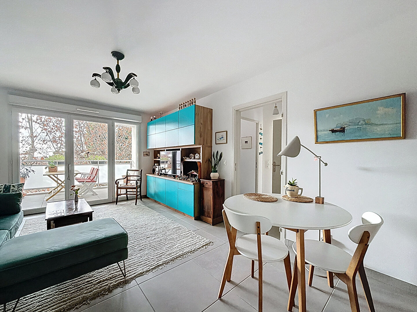 Situé au 2eme étage avec ascenseur, l'appartement se compose d'une entrée, d'une cuisine ouverte sur un séjour lumineux donnant accès à une vaste terrasse, de deux chambres dont une avec placard, d'une salle de bains, ainsi que d'un WC séparé et spacieux, offrant la possibilité d'installer un coin buanderie.