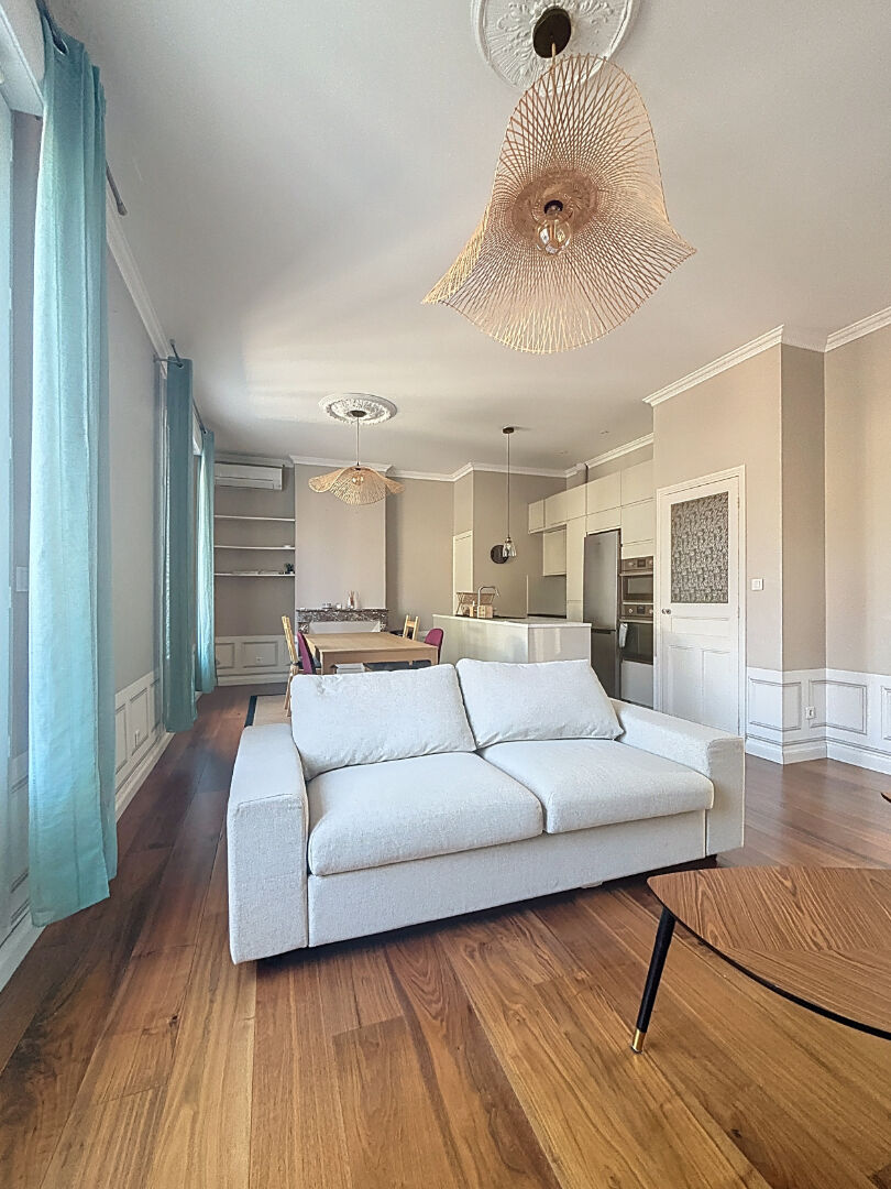 A louer beau T2 meublé avec goût, au 2ème etg sans asc , se compose d'une entrée, d'un salon- salle à manger avec placards, d'une cuisine ouverte, d'une chambre avec dressing et d'une salle d'eau avec wc.