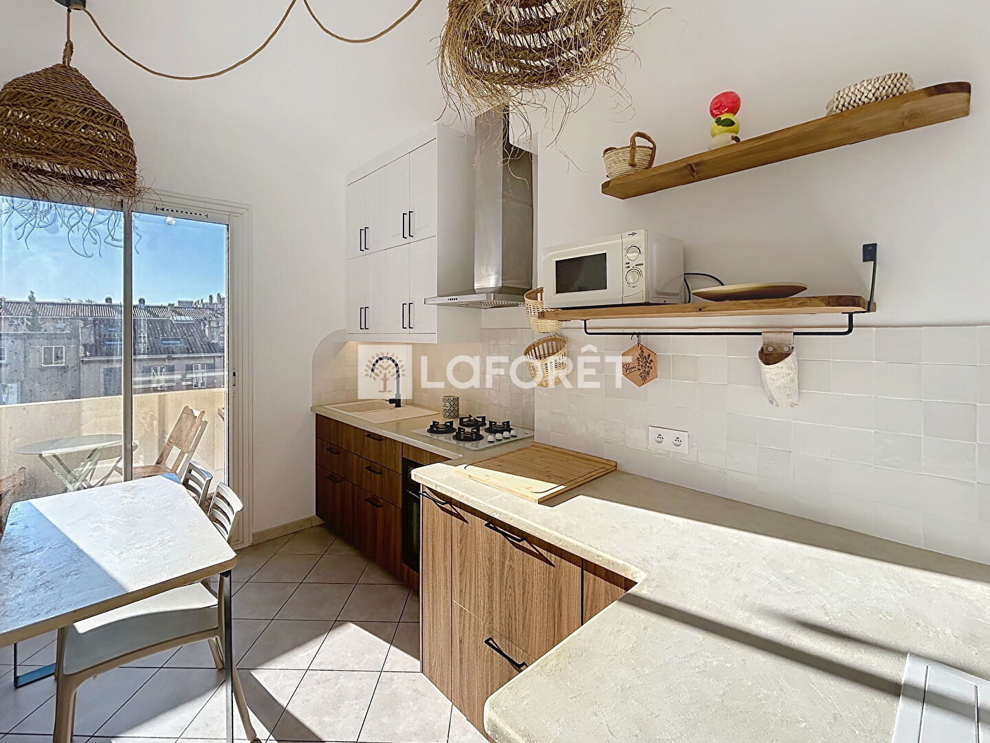 Il se situé au 6ème étage avec ascenseur d'un immeuble semi récent et se compose d'une entrée, un séjour donnant sur un balcon, une cuisine aménagée et équipée (plaques et hotte, four, réfrigérateur/congélateur), 2 chambres ,une salle d'eau avec WC .