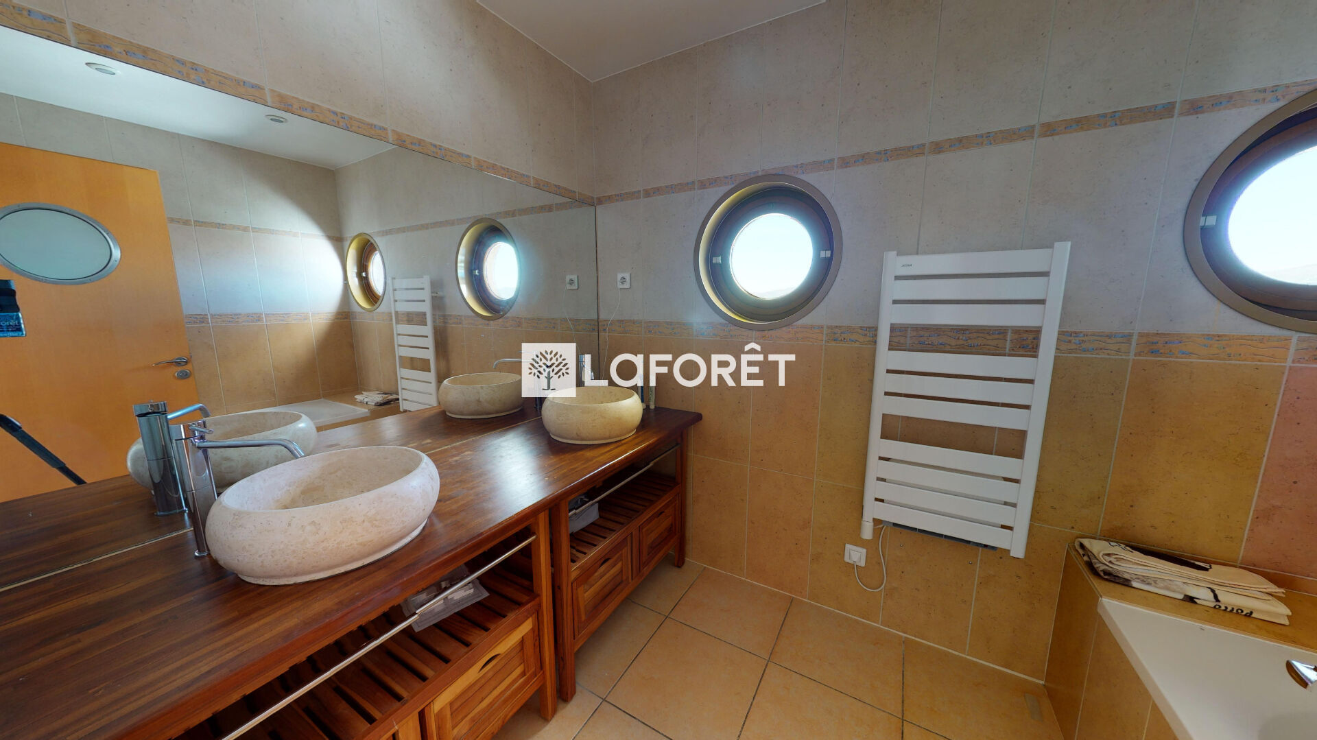 Dès le matin, la salle de bains vous le rappellera grâce à ses deux hublots façon paquebot de croisière .