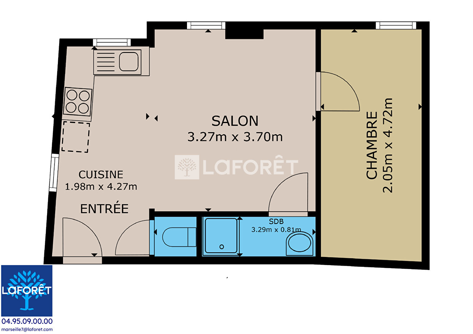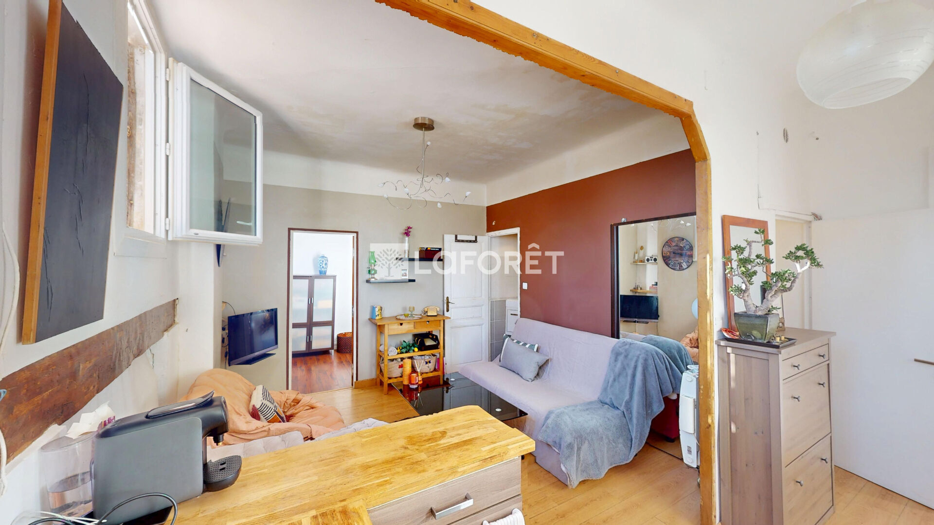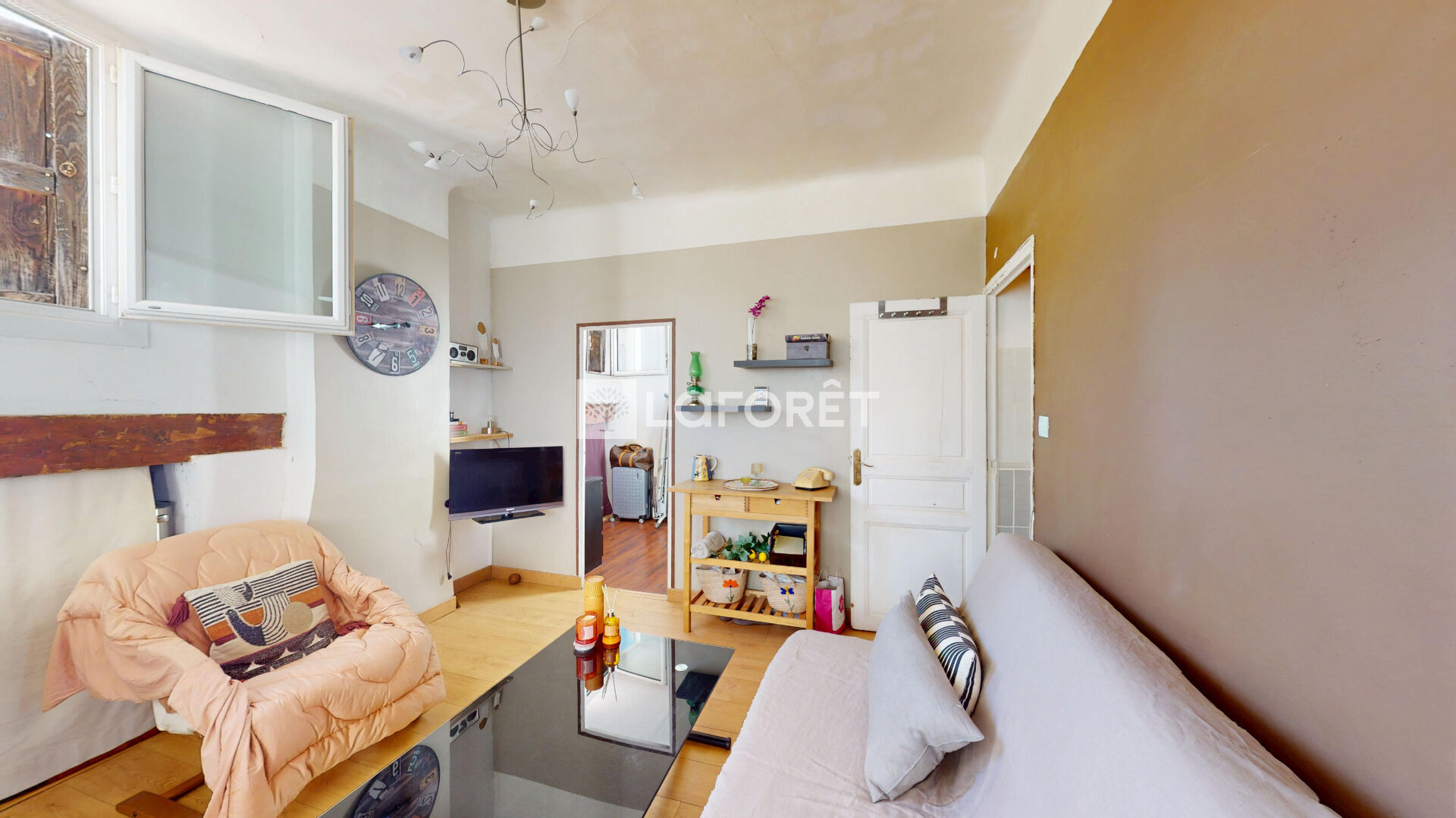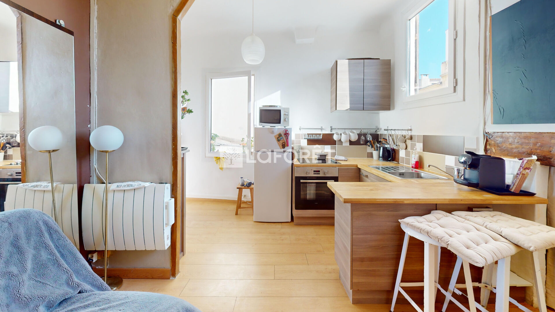 Situé au 2e étage (et dernier !) d'un petit immeuble typique marseillais sans ascenseur , cet appartement de 32.53m² offre une chambre, un salon lumineux avec cuisine ouverte, une salle d'eau fonctionnelle, un WC séparé (parce qu'on a le sens des priorités), et même un petite terrasse commune pour saluer les voisins ou discuter météo autour d'un Ricard.