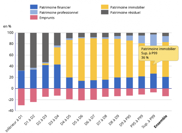 - 95% du patrimoine immobilier est détenu par la moitié des ménages