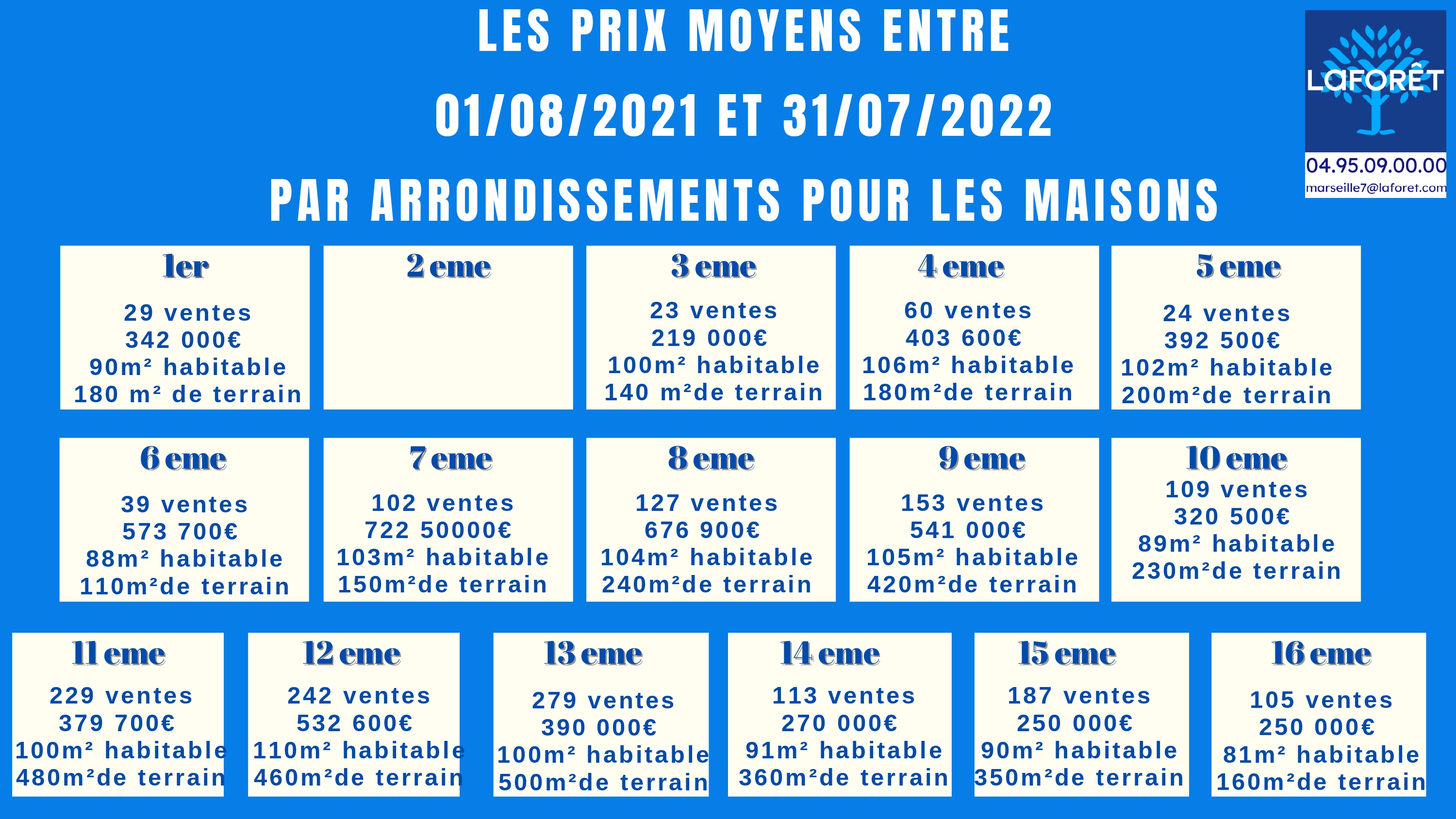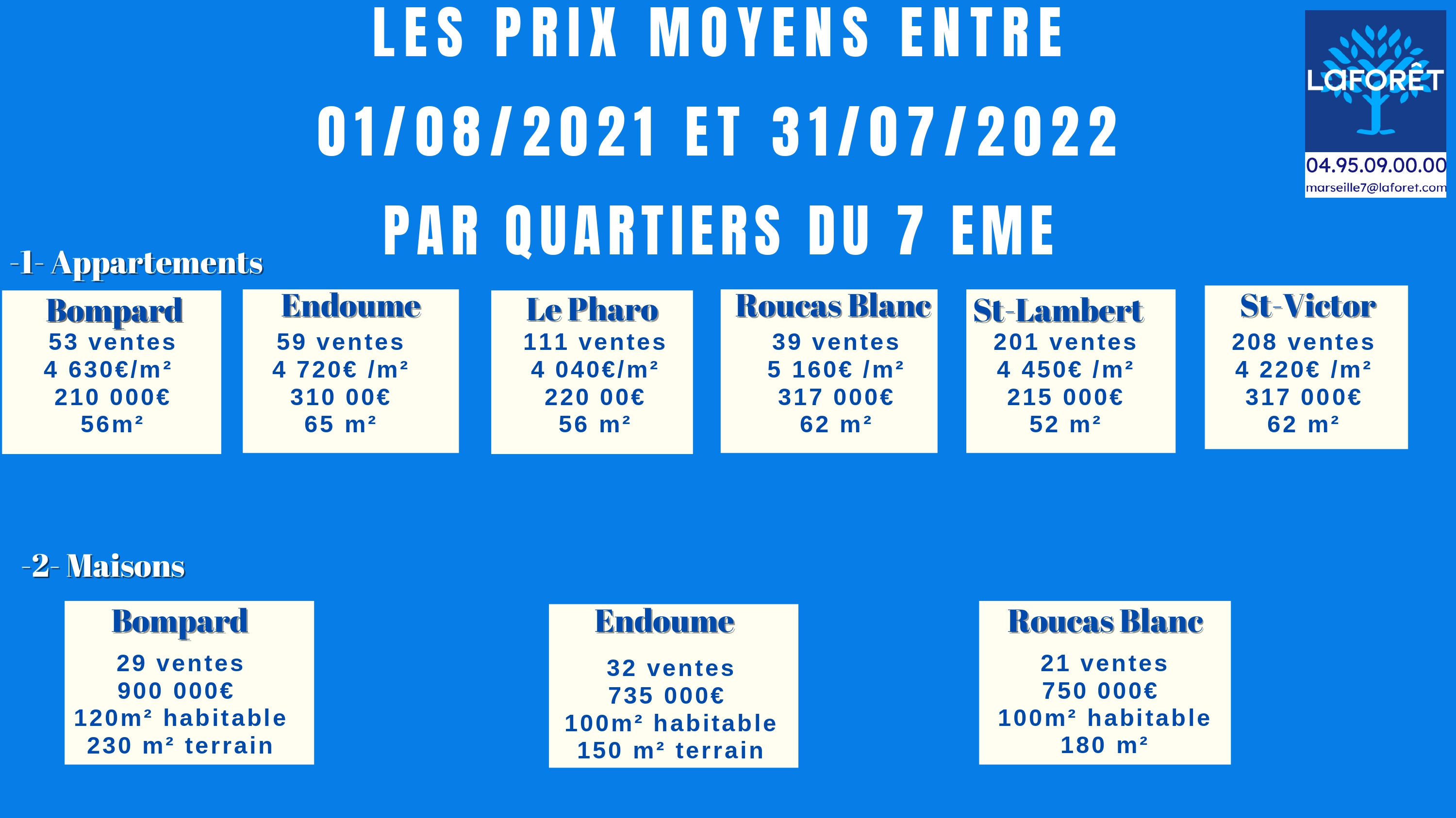 Sur cette période les prix ont évolué de 7.3 % sur Marseille pour les appartements et de 4.7% pour les maisons.