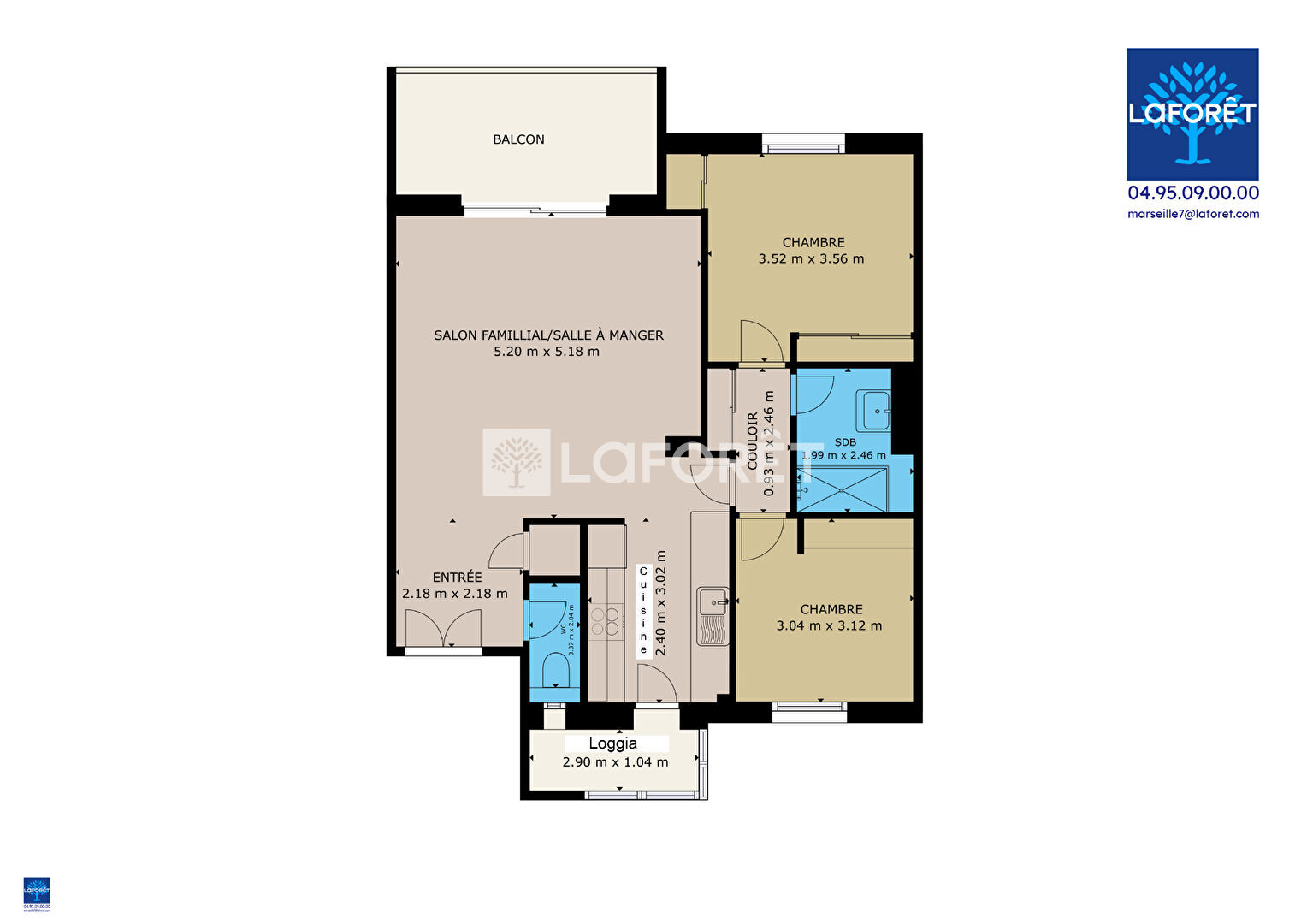 70 m² • 3 pièces • 2 chambres