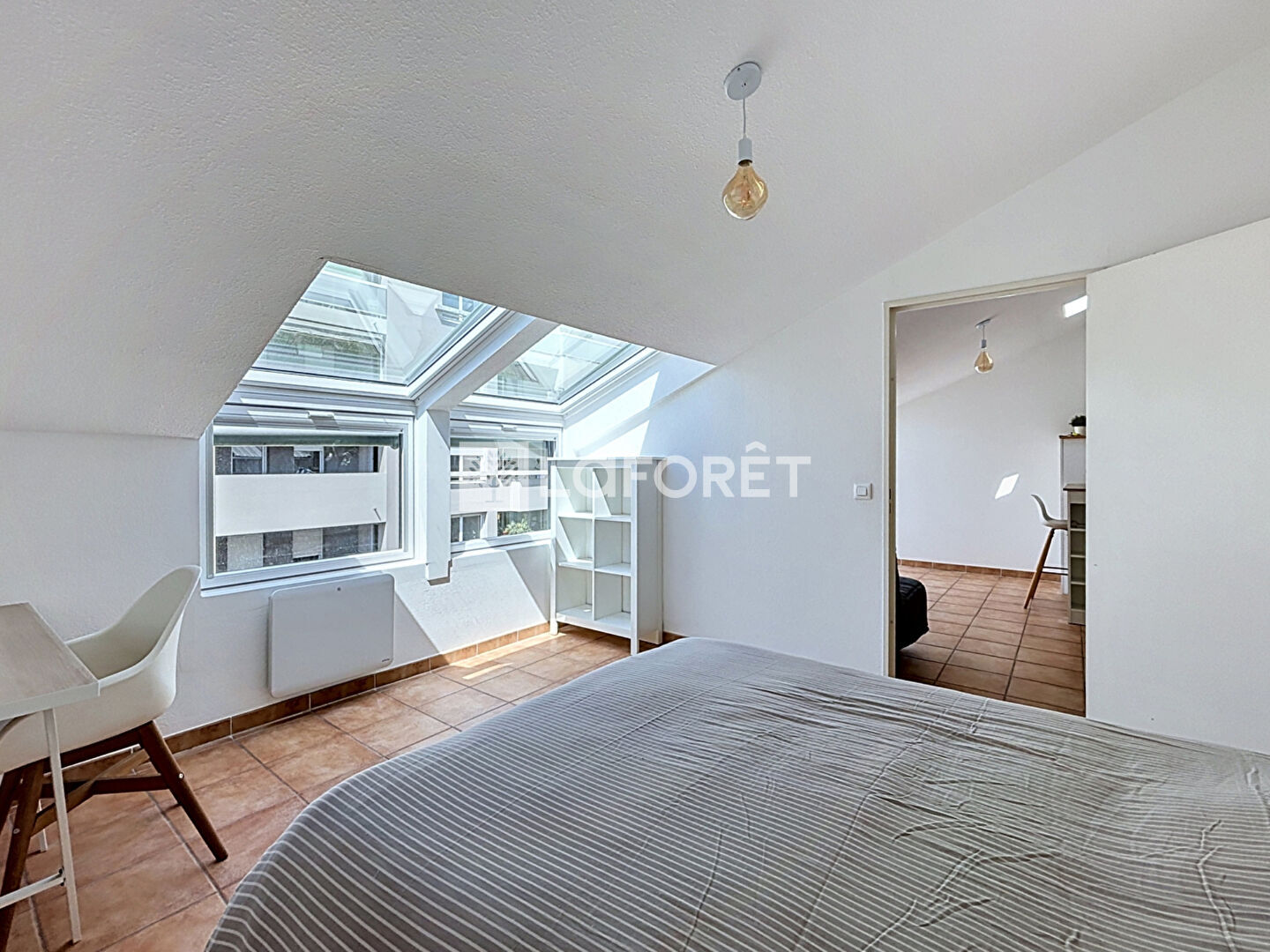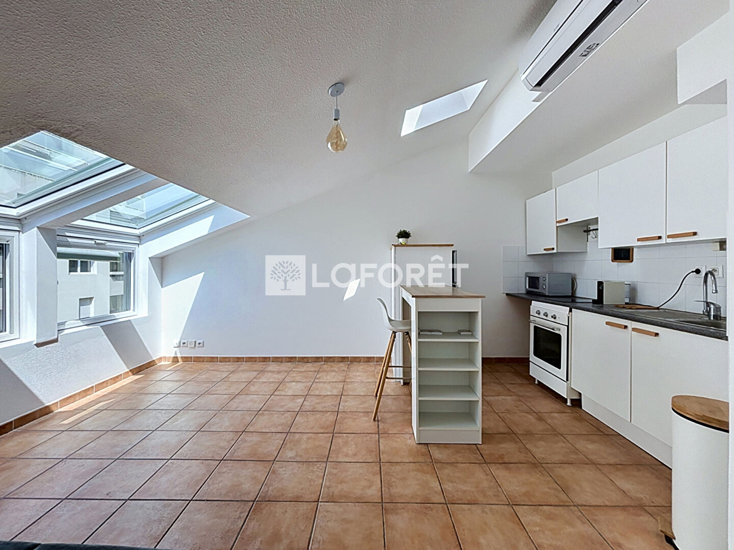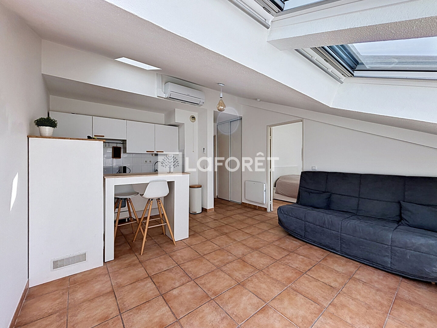 Ce bien se compose d'un séjour lumineux avec cuisine ouverte aménagée et équipée, offrant un espace de vie fonctionnel et agréable. L'espace nuit comprend une chambre ainsi qu'une salle d'eau avec WC.