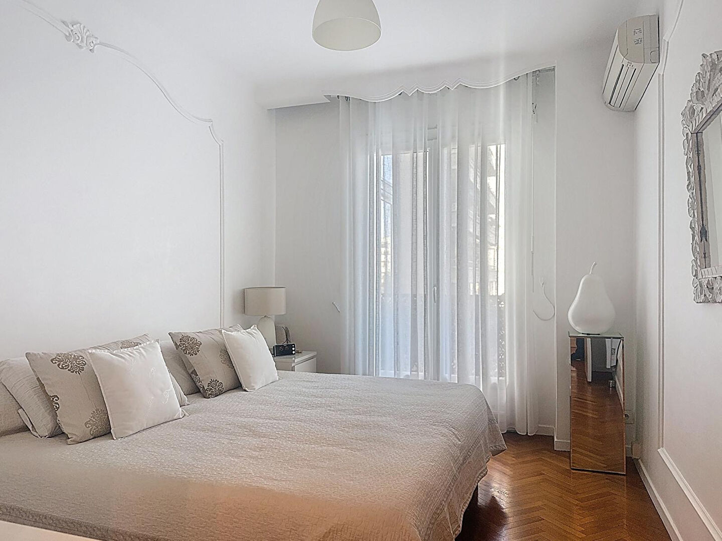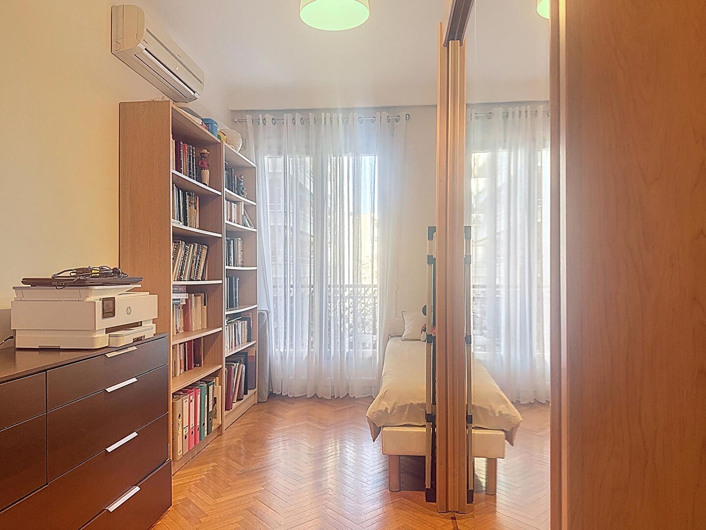 Appartement de type 4 ,de 95m² dans le style années 40 fin de période art déco il se compose d'une pièce de vie lumineuse et spacieuse de 50m² avec un balcon sur sa longueur, comprenant deux chambres avec des espaces de rangements ainsi qu'une climatisation dans chaque .Faibles charges de copropriété bien tenue