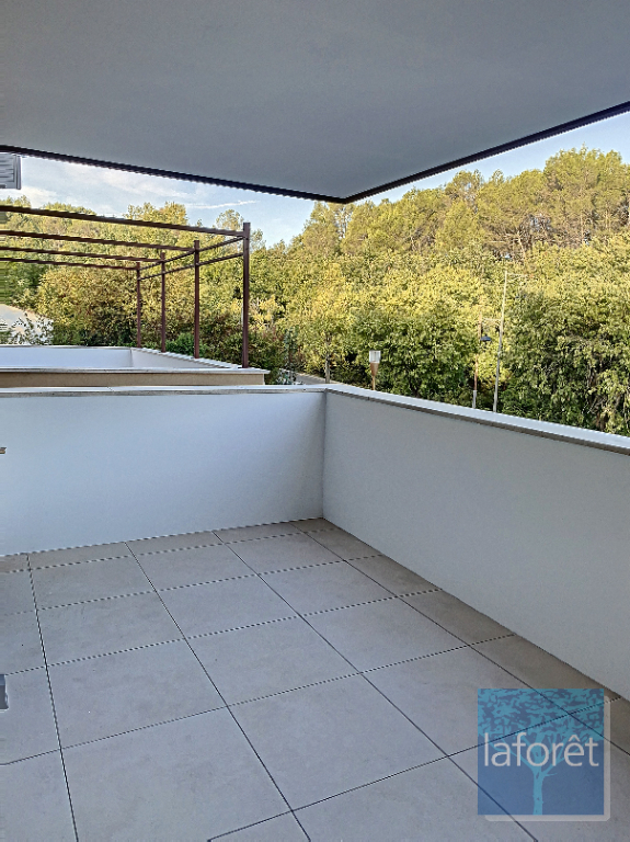 Il dispose d'un séjour avec cuisine aménagée et semi-équipée, un chambre avec salle de bain et wc ainsi qu'une belle terrasse de 12m².