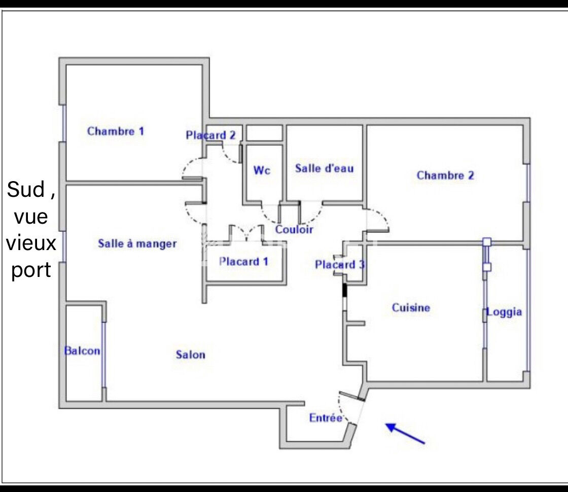 L'appartement s'ouvre sur un vaste hall d'entrée, avec tout de suite, une formidable vue qui s'offre à nous, avec un double séjour de plus de 36 m² baigné de lumière, prolongé par un balcon plein sud-ouest offrant une vue spectaculaire sur ce mythique Vieux port et ses voiles.