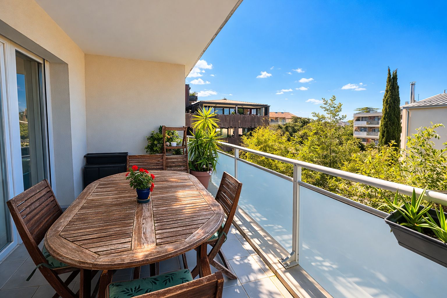 Appartement T3 de 63 m² environ avec terrasse de 12 m² environ, un salon agréable de plus de 30 m² , chauffe eau solaire.
