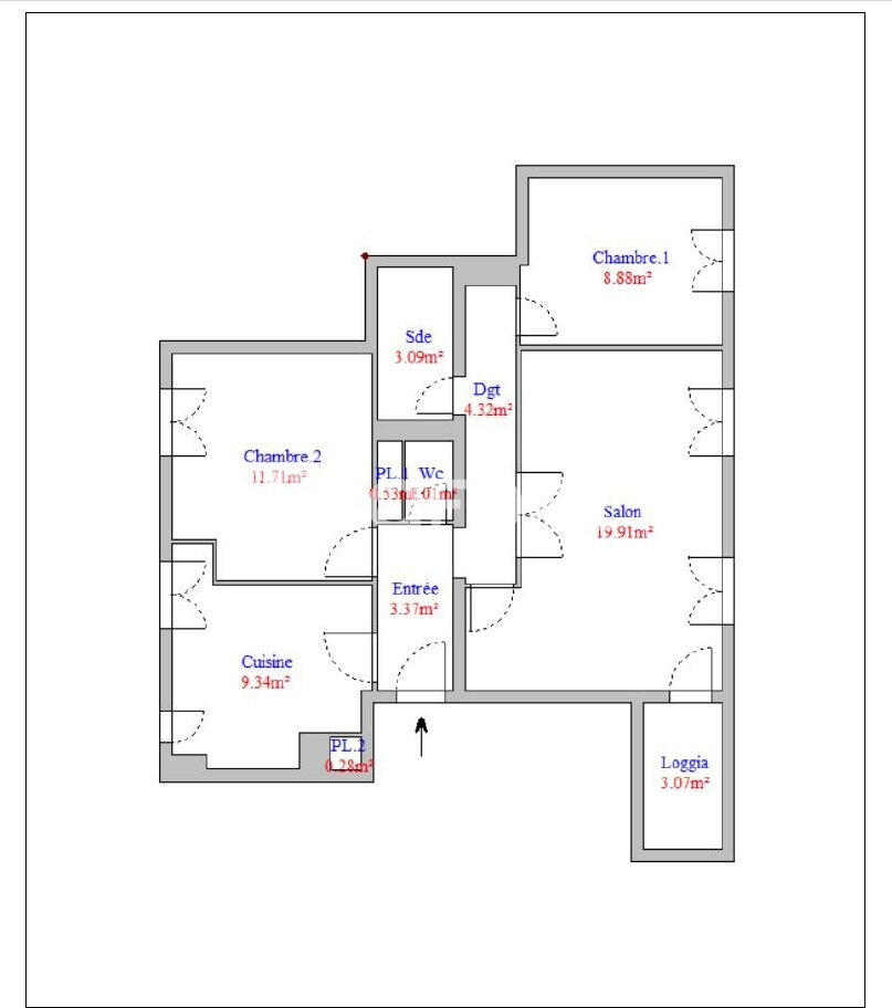 62 m² • 4 pièces • 2 chambres
