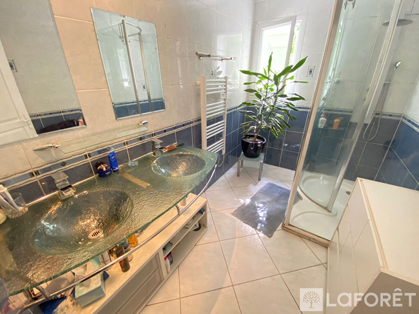 À l'extérieur, le terrain arboré à proximité d'une parcelle boisée classée vous assure , environnement calme et sans nuisance pour profiter pleinement de la piscine et de l'immense terrasse plein sud.