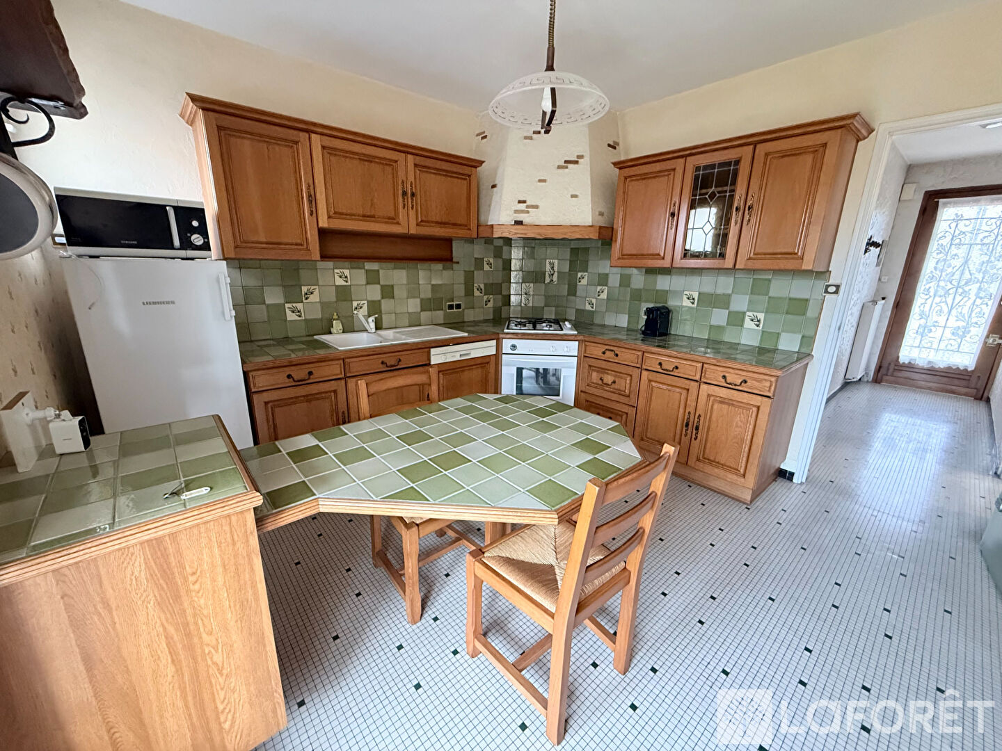 Dès l'entrée, vous découvrirez un salon-séjour traversant, lumineux, invitant à la convivialité. La cuisine, aujourd'hui fermée, peut facilement être ouverte pour créer une grande pièce de vie moderne et chaleureuse.