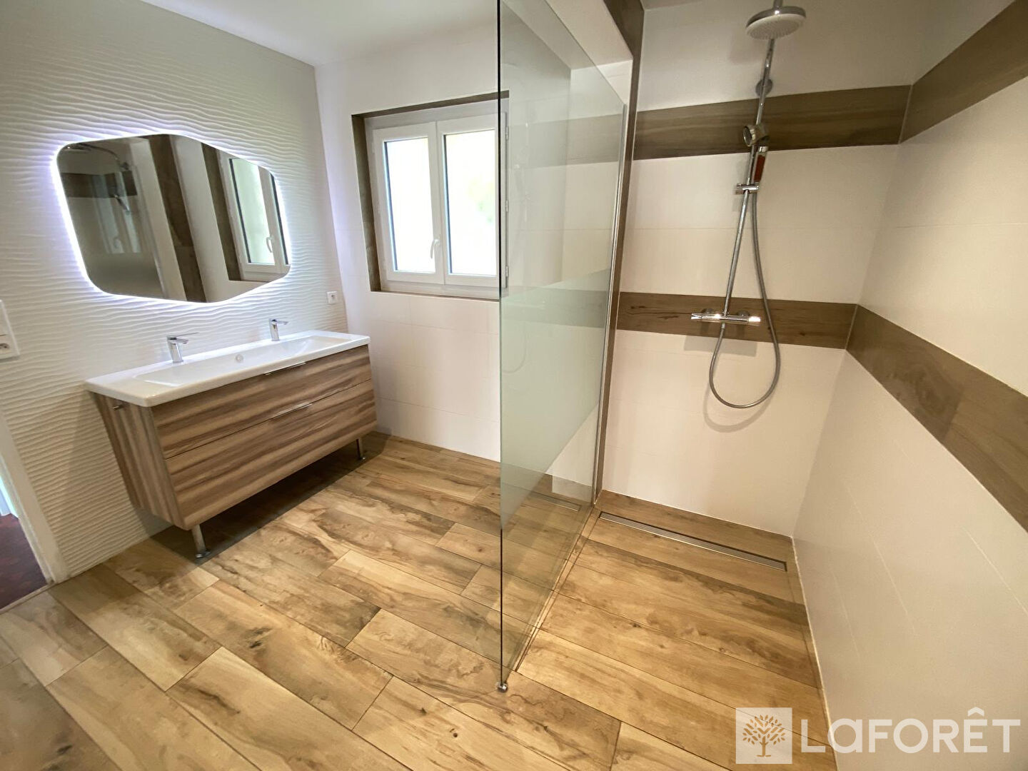 Elle se compose d'un séjour lumineux avec cheminée, d'une cuisine indépendante, de trois chambres, d'une salle de bains, de deux WC ainsi que d'un garage.
