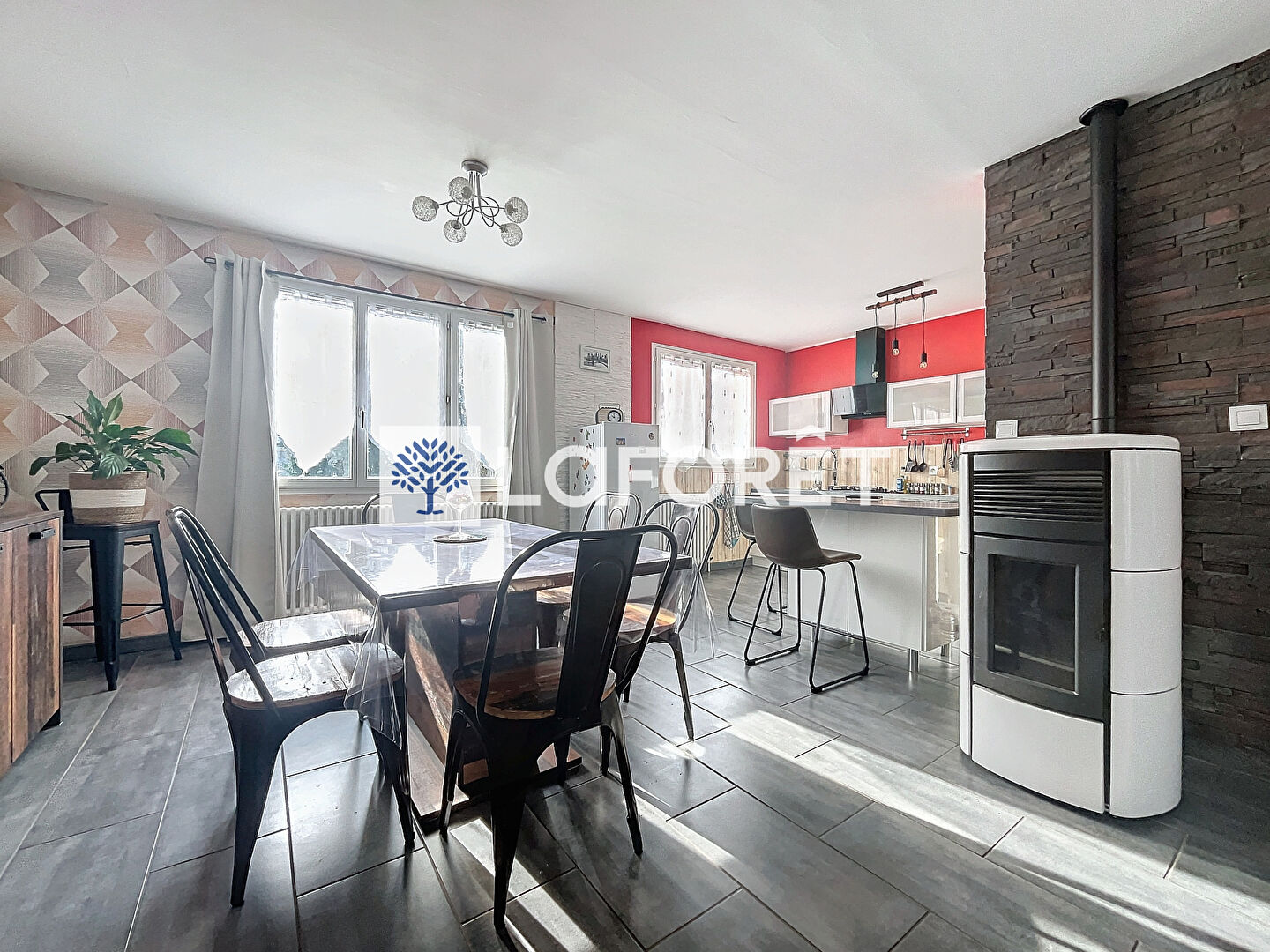 Dès l'entrée, vous serez séduit par une belle pièce de vie lumineuse, agrémentée d'un poêle à granulés installé en 2017. La cuisine, aménagée et équipée, s'ouvre sur cet espace chaleureux et convivial.