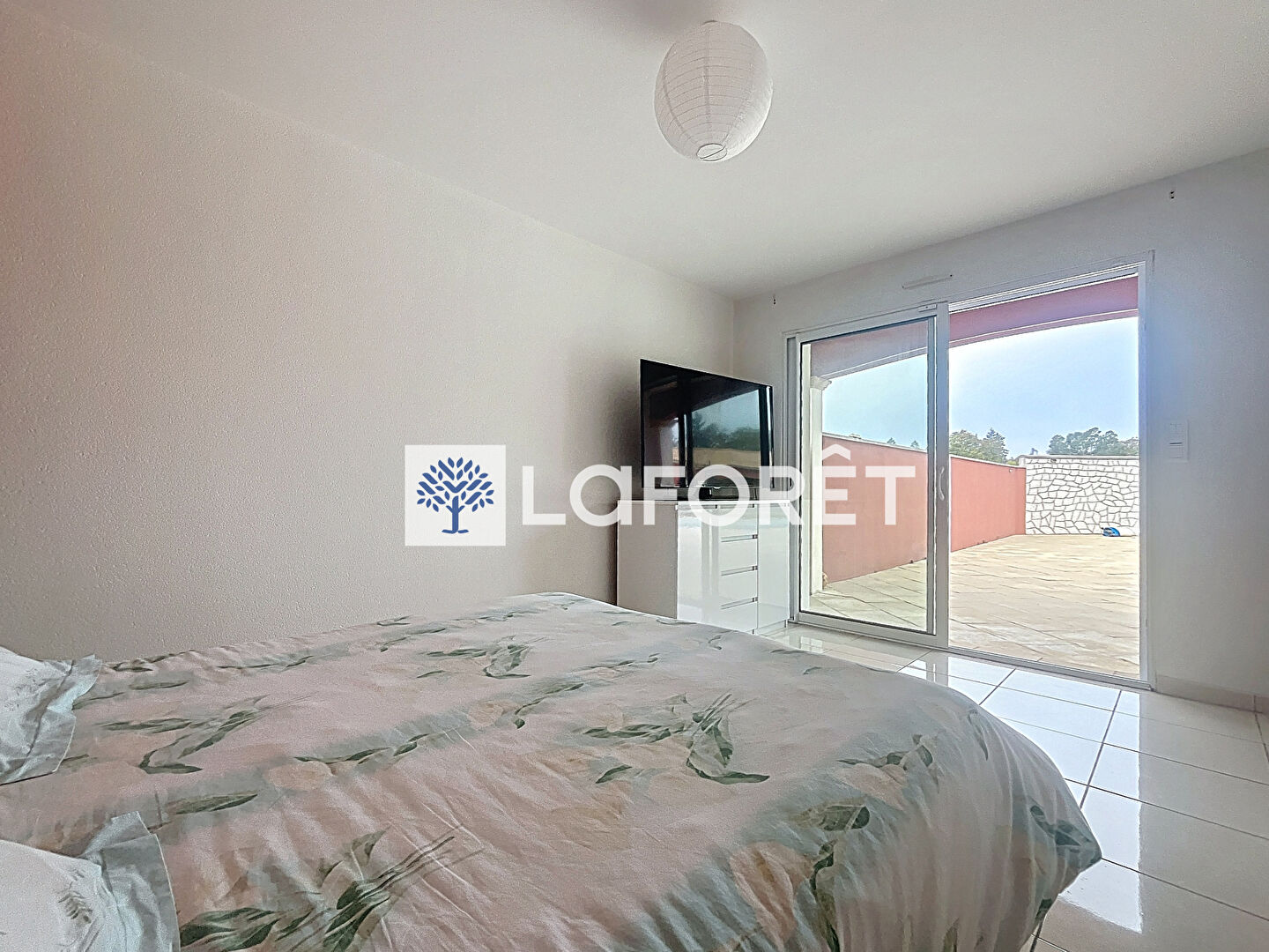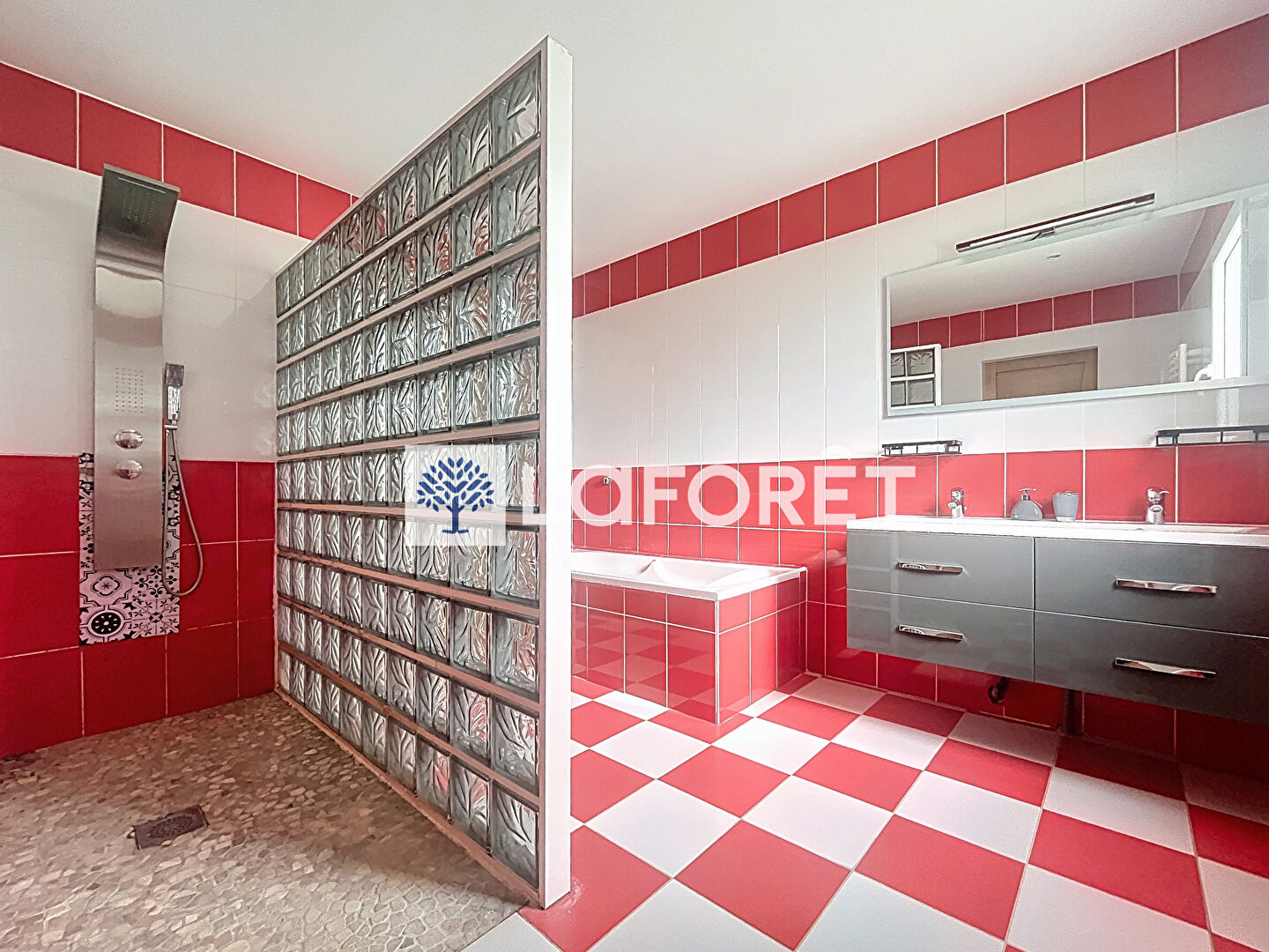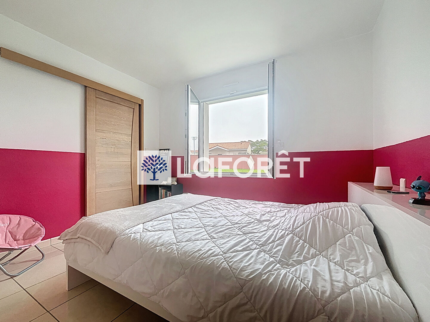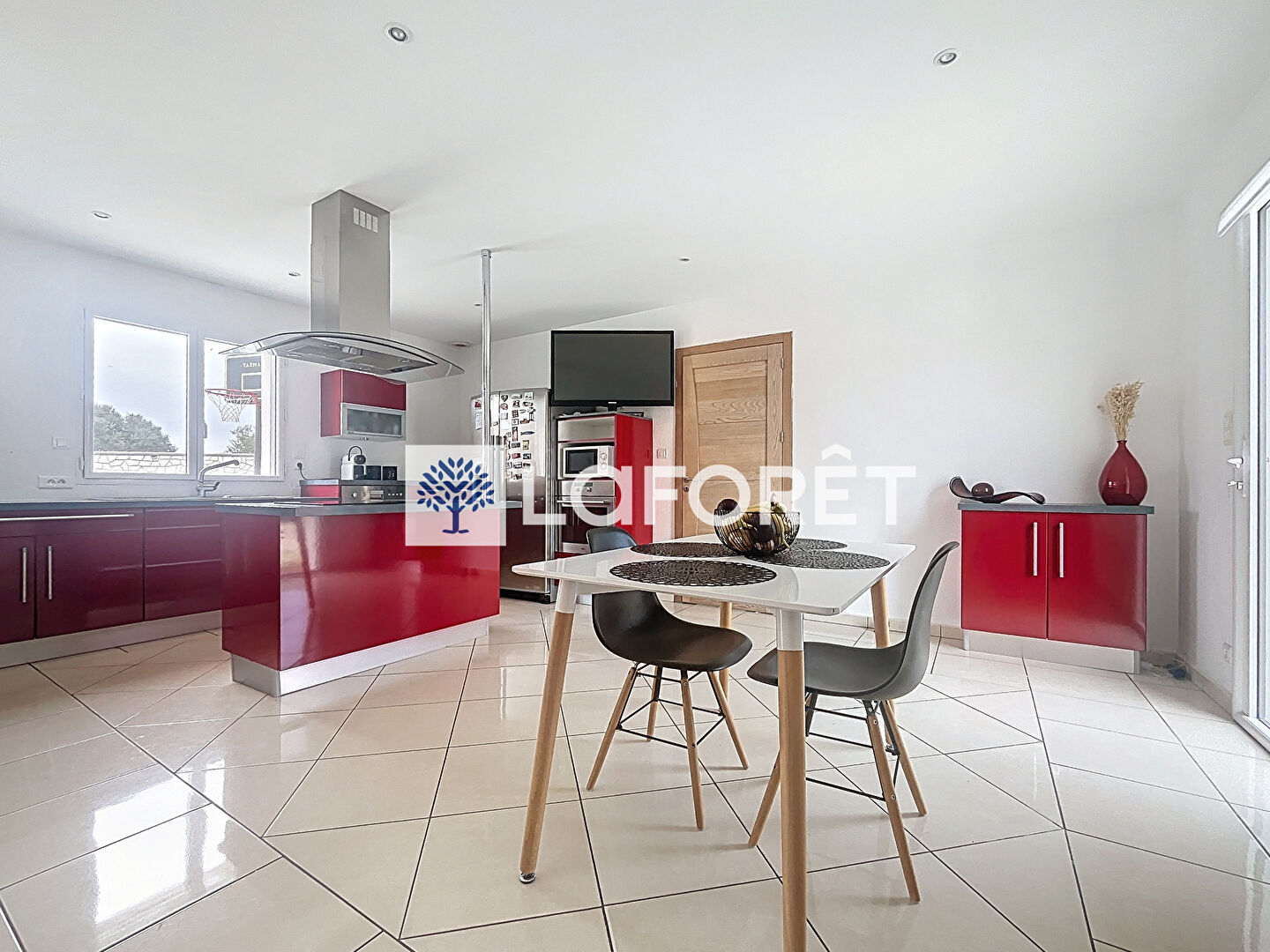 De plain-pied, elle s'ouvre sur un hall d'entrée qui dessert un bel espace de vie comprenant séjour et cuisine, donnant sur une pièce attenante actuellement aménagée en salle de sport mais qui peut facilement retrouver une autre destination.