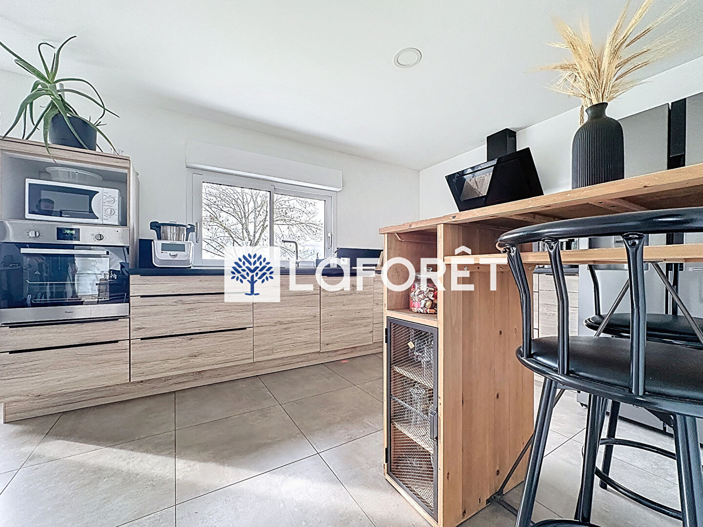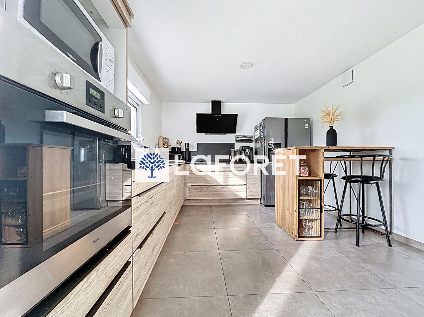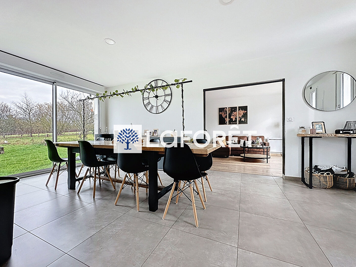 L'ensemble des pièces de vie se situe de plain-pied. L'entrée s'ouvre sur une salle à manger conviviale, au coeur d'un espace de vie ouvert tout en conservant des volumes bien définis. Sur la gauche, une cuisine aménagée et équipée, récente, bénéficie d'un accès direct à l'extérieur grâce à une porte-fenêtre. Une pièce fermée attenante accueille une buanderie ainsi qu'un espace de stockage fonctionnel.