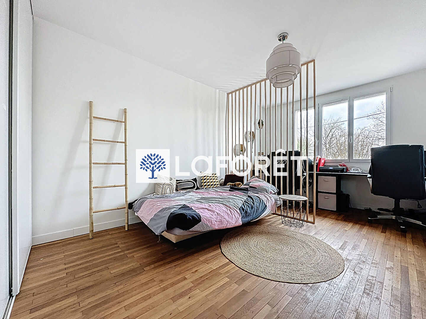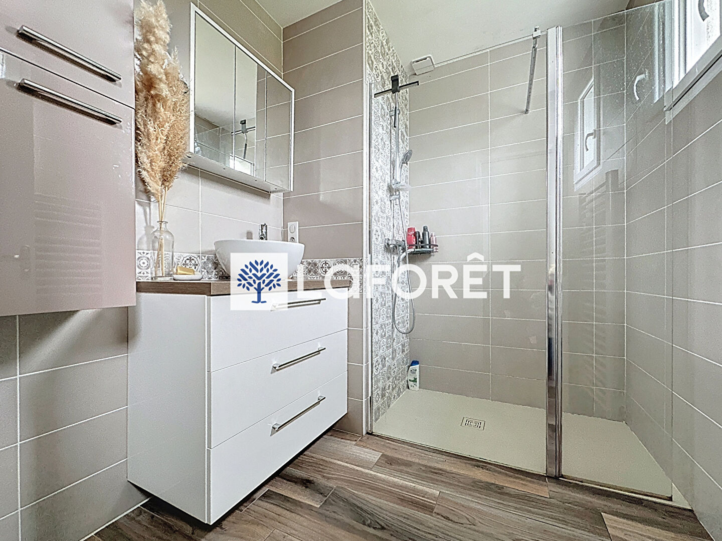 Depuis la pièce de vie, un séjour lumineux donne également accès au jardin. Sur la droite, un salon plus intimiste, esprit cocooning, complète cet espace et dispose d'un WC indépendant. Un escalier mène à l'étage où un palier dessert deux belles chambres. L'une d'elles, particulièrement spacieuse, offre un véritable espace bureau en complément de la partie nuit. La seconde chambre propose également de beaux volumes. Une salle d'eau avec douche, aménagée avec goût, complète cet étage.