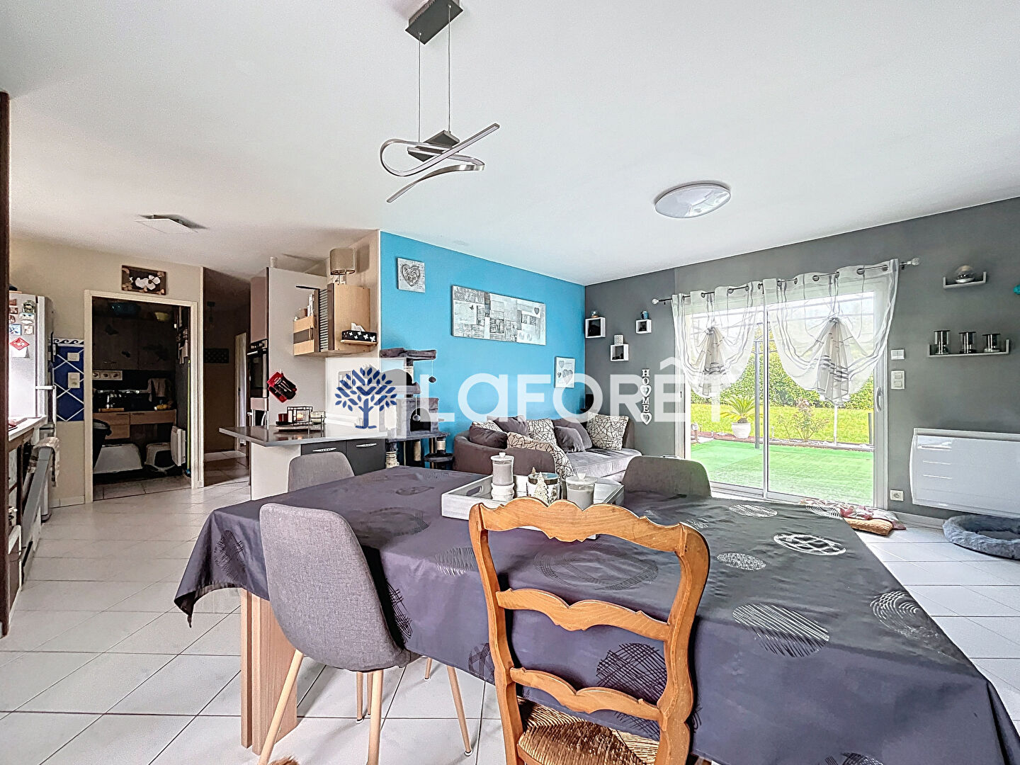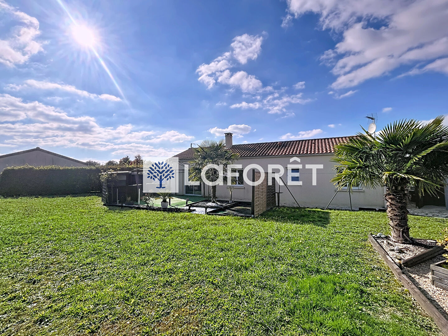 Cette habitation lumineuse, offre une pièce de vie ouverte sur une cuisine fonctionnelle, trois chambres et une salle de bains, le tout complété par un garage de 26 m² et un terrain de 868 m².