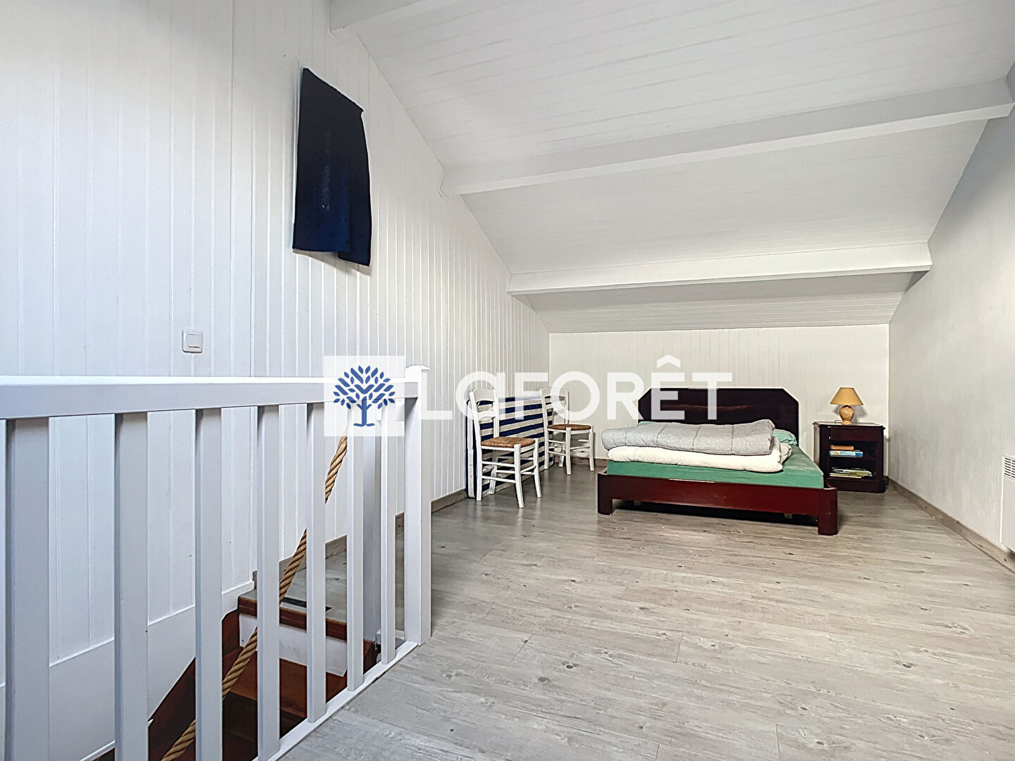Au second étage, une nouvelle pièce palière dessert une troisième chambre.