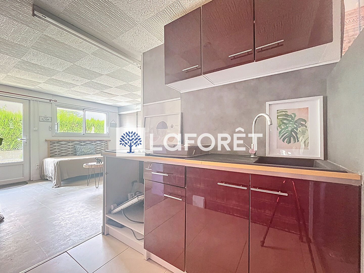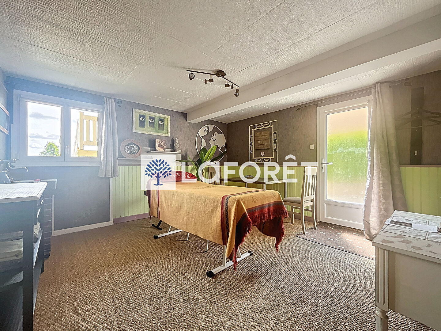 L'entrée dessert une cuisine aménagée donnant sur une véranda, ainsi qu'un séjour lumineux agrémenté d'une cheminée insert. L'espace nuit se compose de deux chambres, d'une salle de bain et d'un WC.