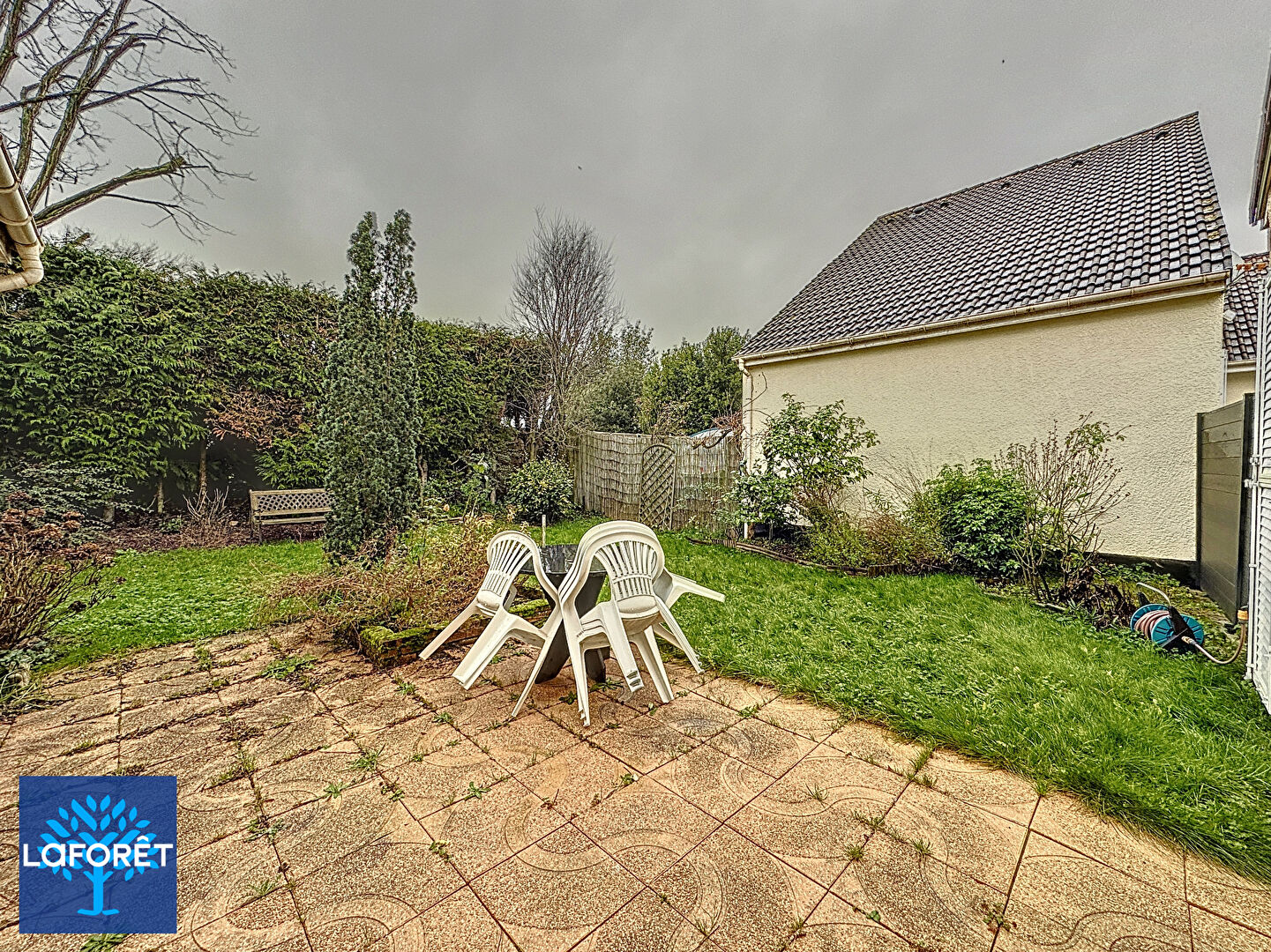 L'extérieur offre un terrain clos, agrémenté d'un abri de jardin.