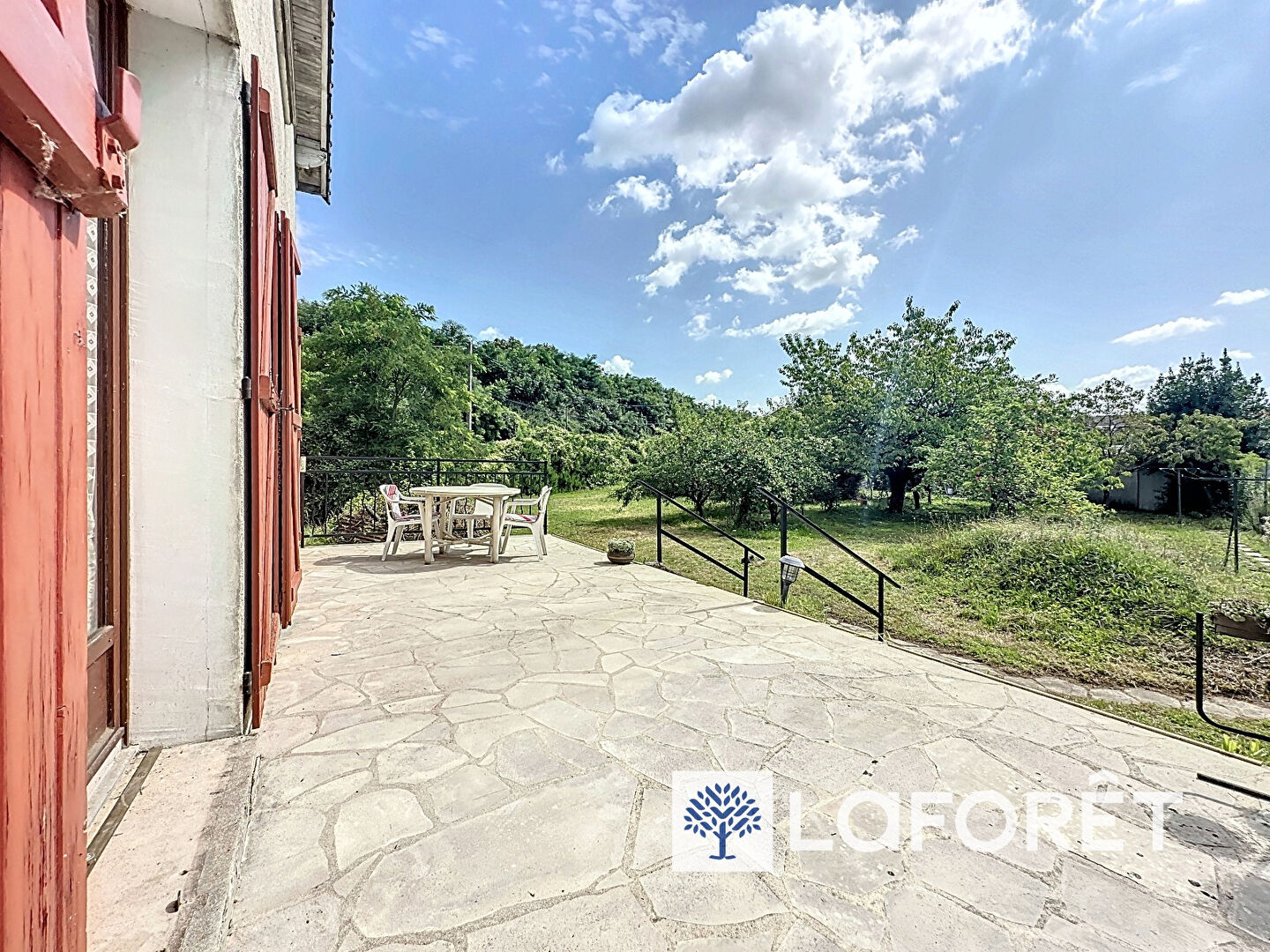 À l'arrière, une agréable terrasse sur jardin vous invite à profiter des beaux jours dans un cadre calme et verdoyant.