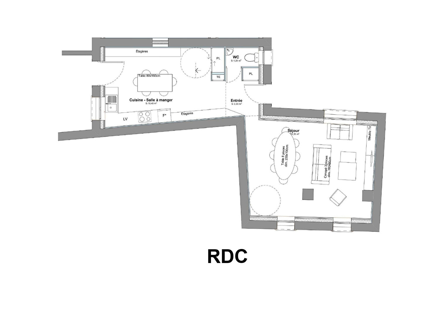 Au rez-de-chaussée : une entrée, une cuisine - salle à manger, un W.C indépendant et un salon.