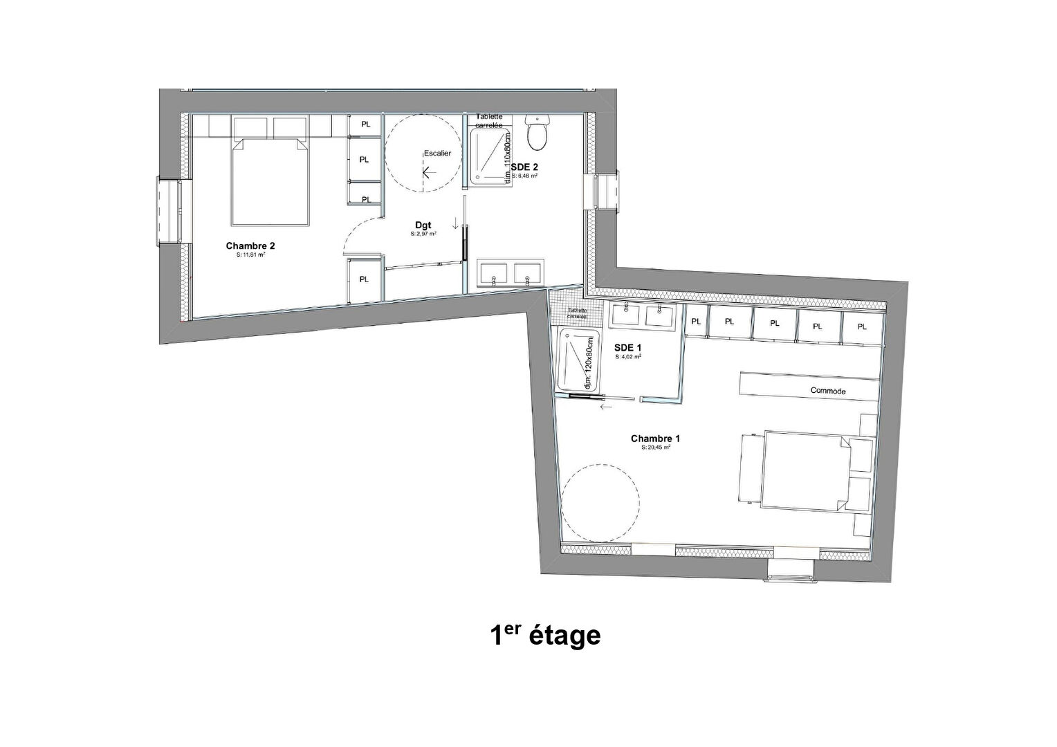 95 m² • 3 pièces • 2 chambres