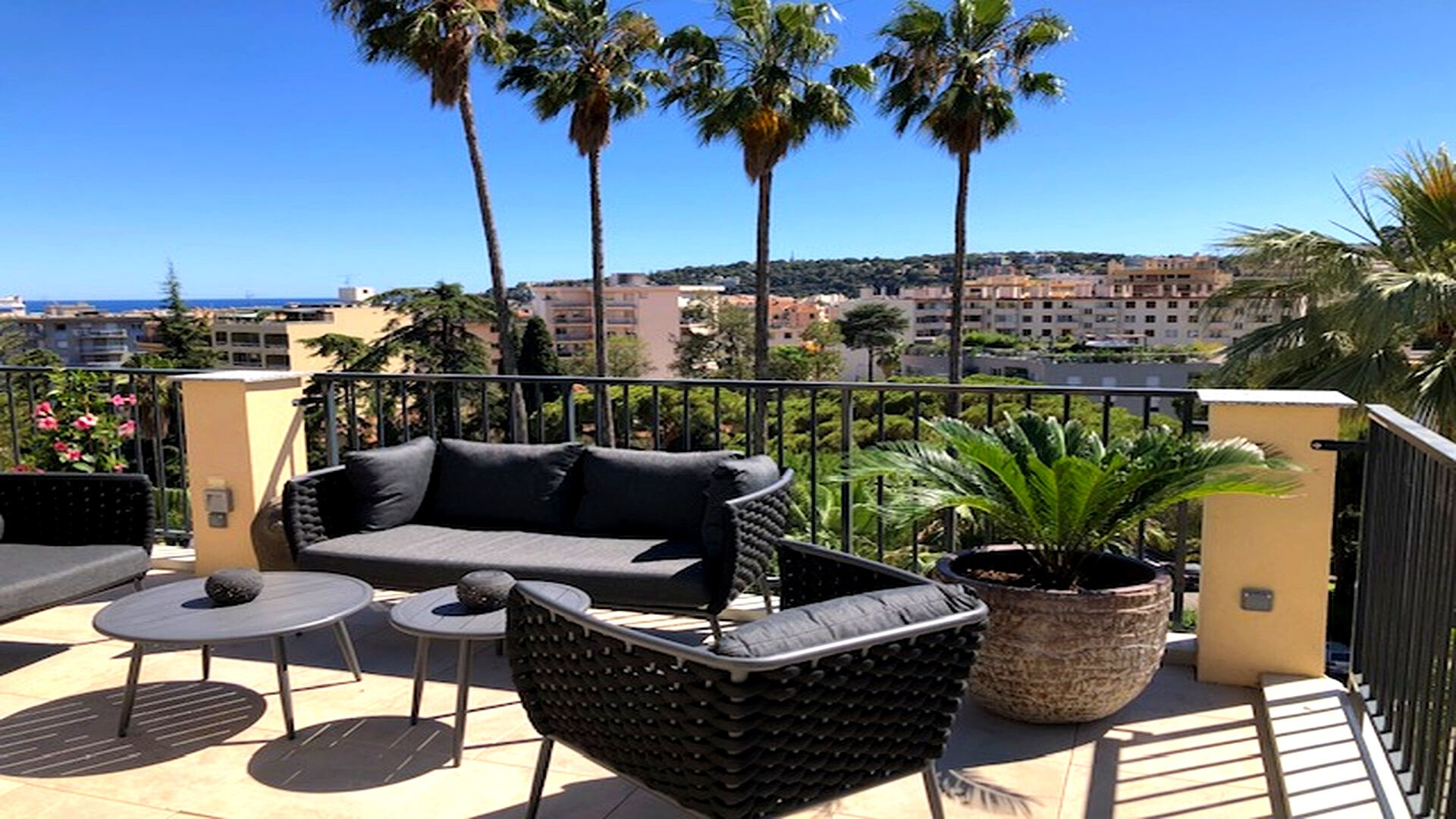 Situé au sein d'une résidence récente et sécurisée, ce bien séduit immédiatement par ses volumes extérieurs exceptionnels. Il bénéficie d'une magnifique terrasse d'environ 200 m², véritable espace de vie à ciel ouvert, idéal pour profiter du climat azuréen, recevoir famille et amis ou simplement savourer des moments de détente. Sur la partie supérieure du toit, un espace spa vous attend pour des instants de relaxation avec vue dégagée.