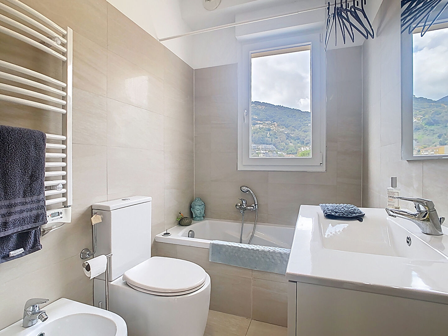 L'appartement propose une distribution fonctionnelle et confortable avec deux chambres, une salle de bains, une salle d'eau, ainsi qu'un **bureau indépendant, parfait pour le télétravail ou un espace invité.