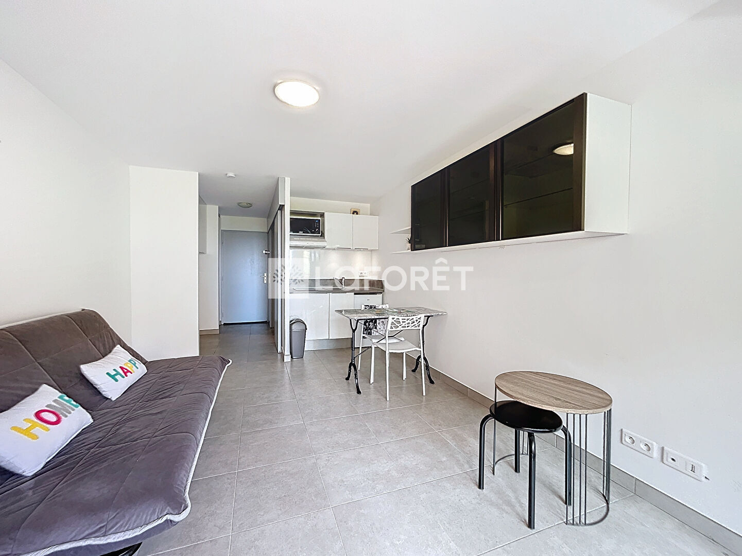 Il est composé d'une pièce de vie avec cuisine ouverte, aménagée et équipée, d'une salle d'eau, d'un WC indépendant, d'une entrée et d'un balcon exposé plein sud.