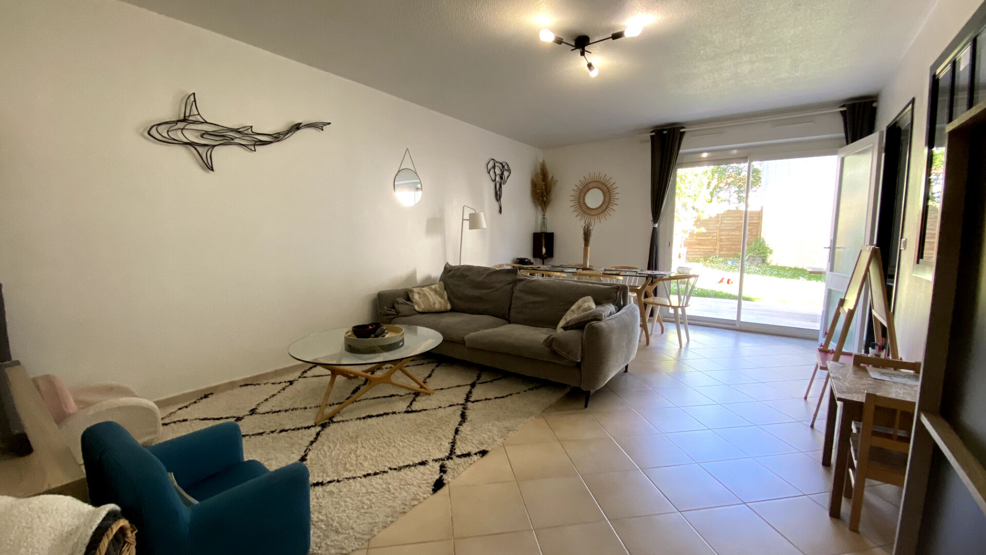 Belle pièce de vie lumineuse avec séjour / salle à manger ouverts sur le jardin
