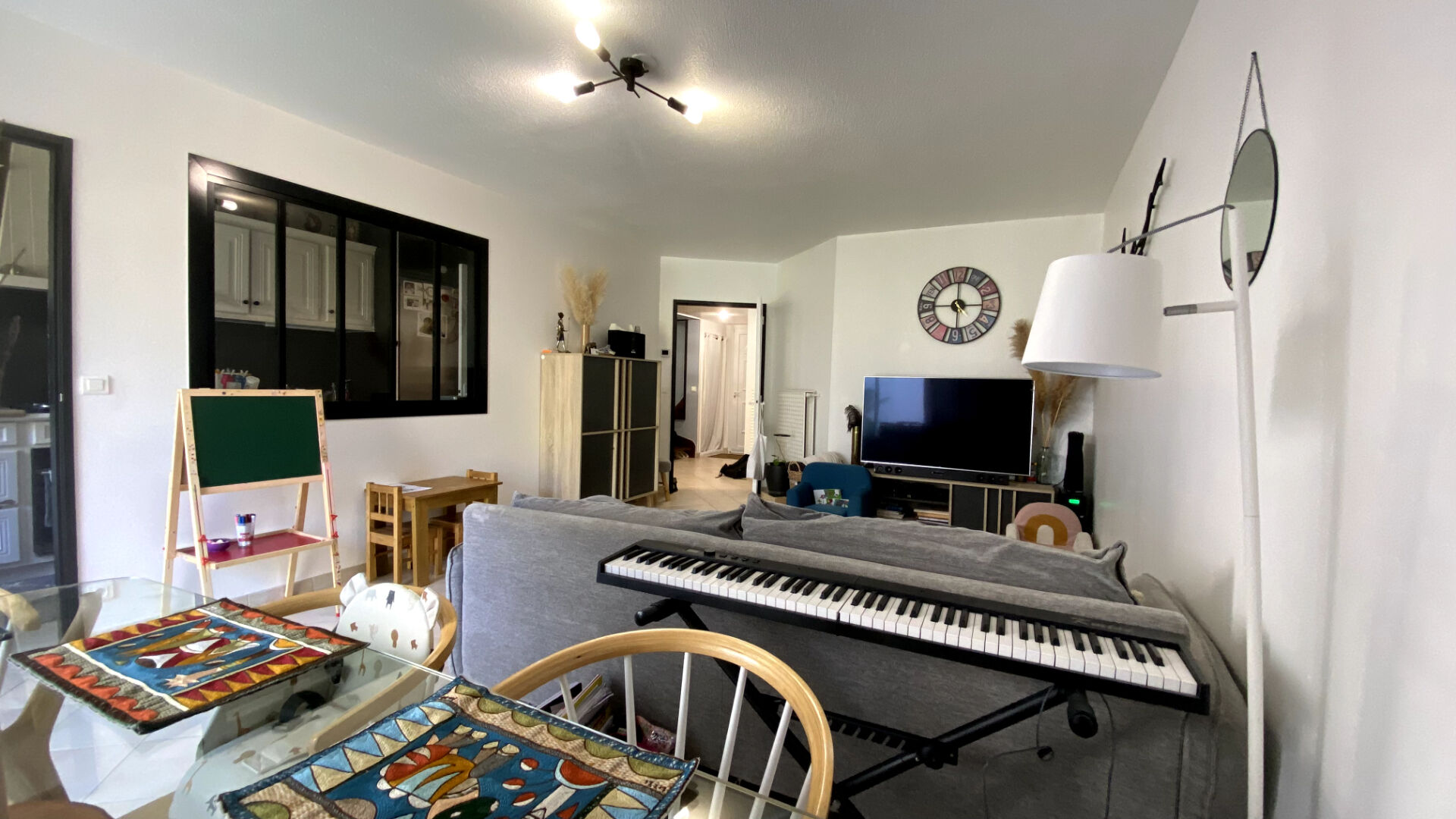 Cuisine semi-ouverte entièrement équipée, verrière et finitions contemporaines