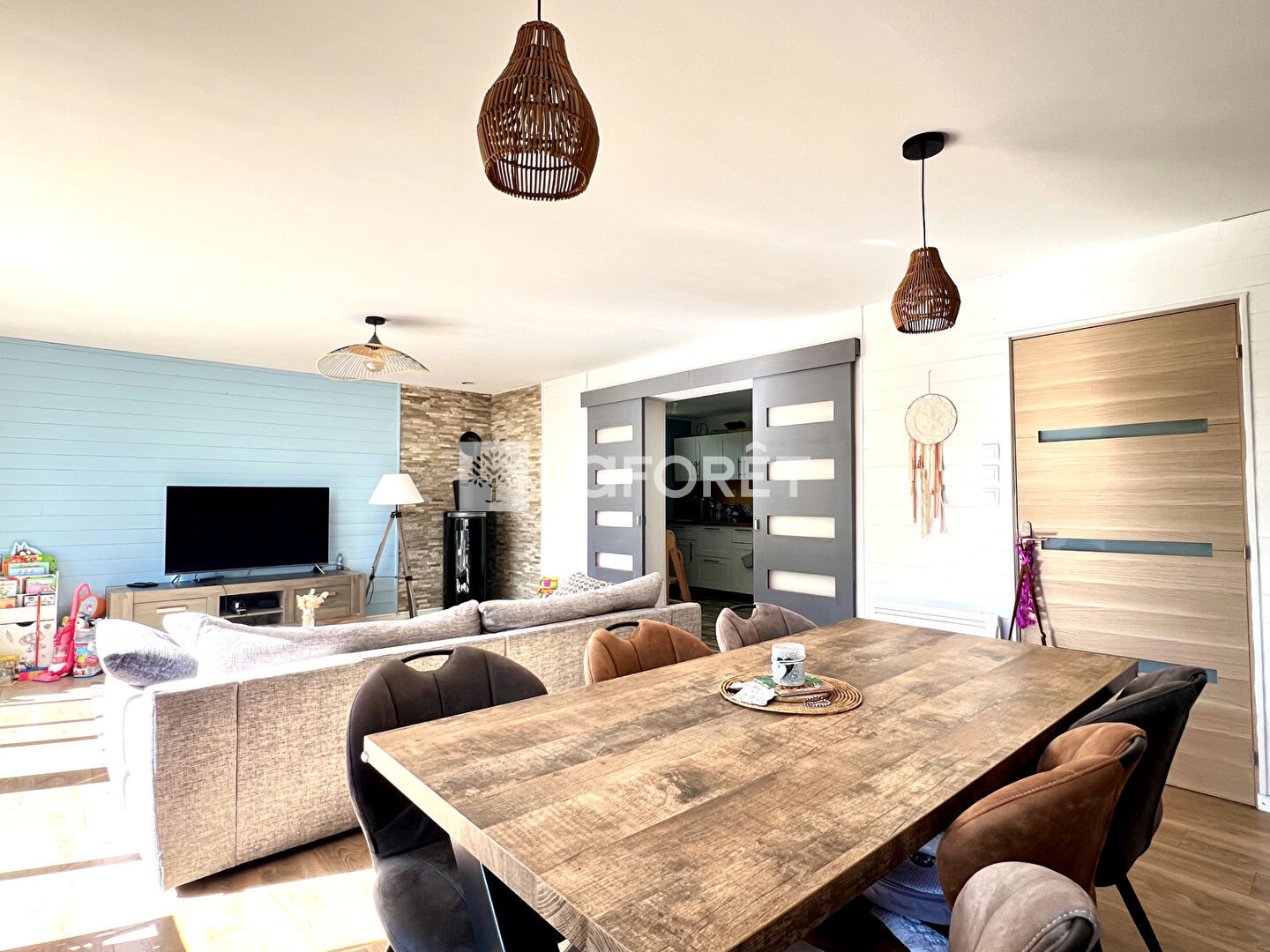 Dès l'entrée, vous serez séduits par une pièce de vie lumineuse de 33 m² avec poêle à pellets et grandes baies vitrées ouvertes sur la terrasse. La cuisine équipée attenante allie convivialité et fonctionnalité.