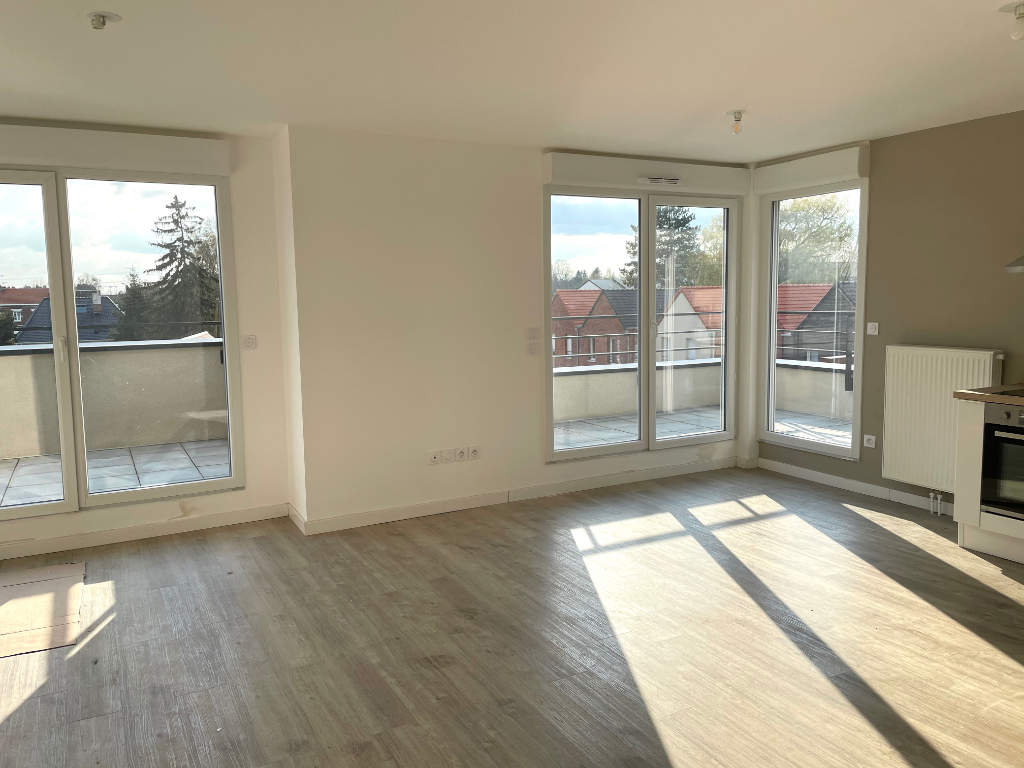 Laforêt Mérignies Templeuve vous propose à la location ,en centre de TEMPLEUVE EN PEVELE un bel appartement de 95m2 à proximité de toutes commodités.