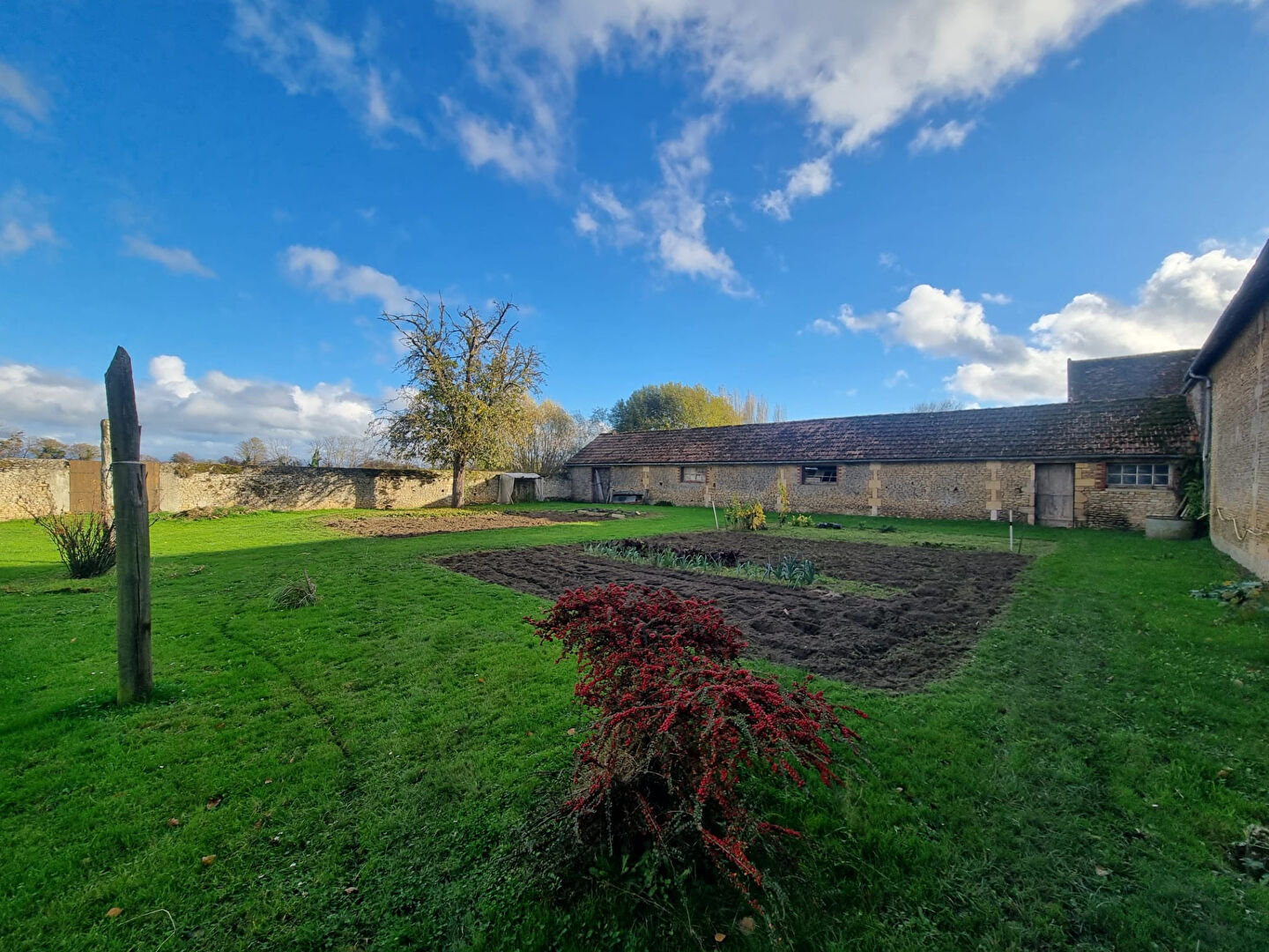 A l'arrière, deux grandes surfaces de jardin, qui étaient exploitées en potager et jardin.