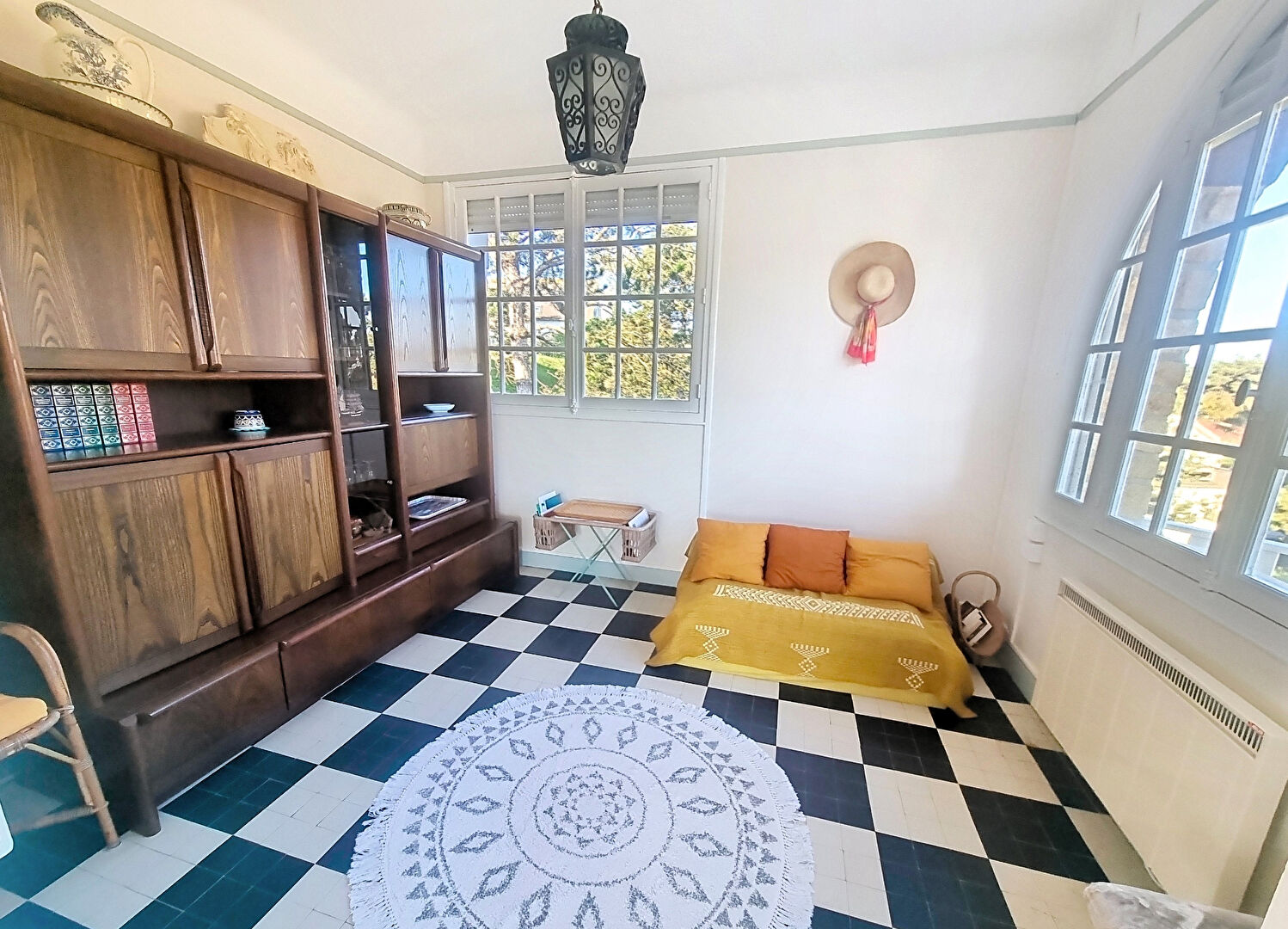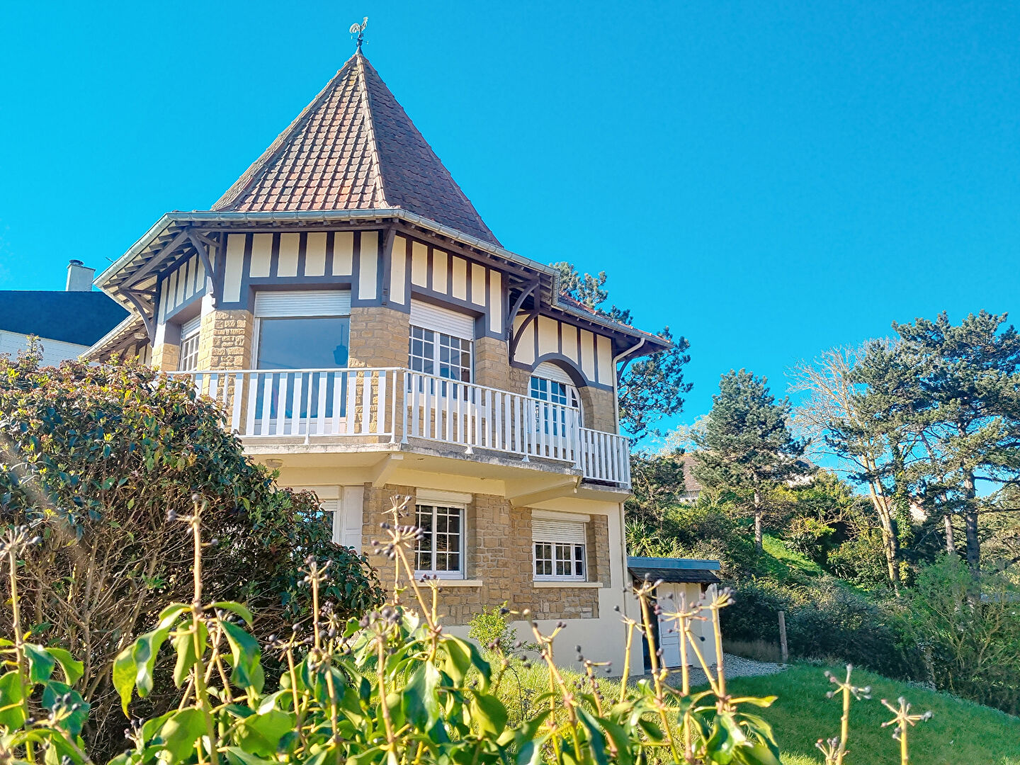 Son salon est situé dans la tourelle et la vue est exceptionnelle. Des éléments de charme parsèment la villa, qui est par ailleurs parfaitement entretenue.