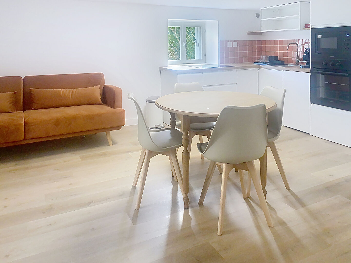 Il se compose d'un bel espace de vie lumineux, d'une cuisine moderne aménagée, de deux chambres confortables et d'une salle d'eau.