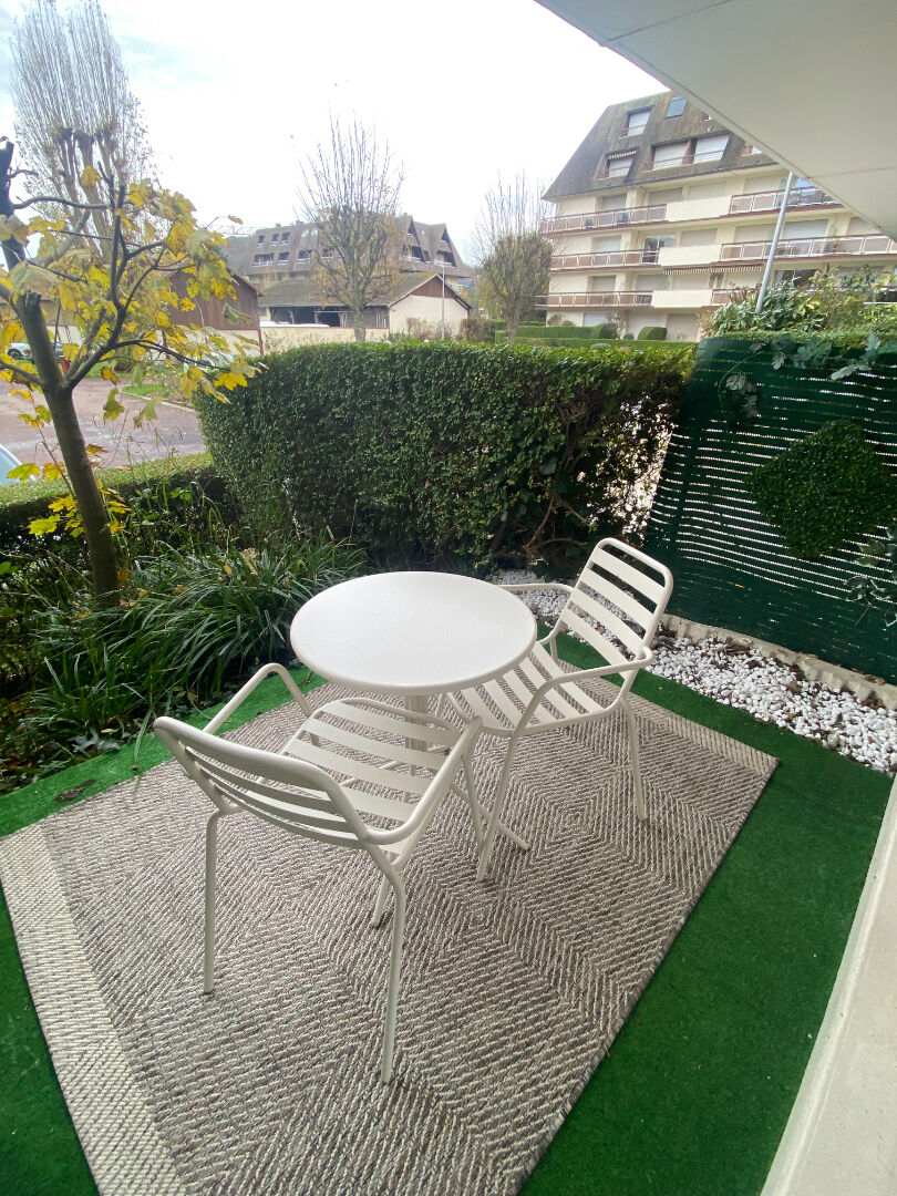 Cet appartement en rez-de-chaussée, situé dans une résidence calme, à proximité du centre ville et de la plage.