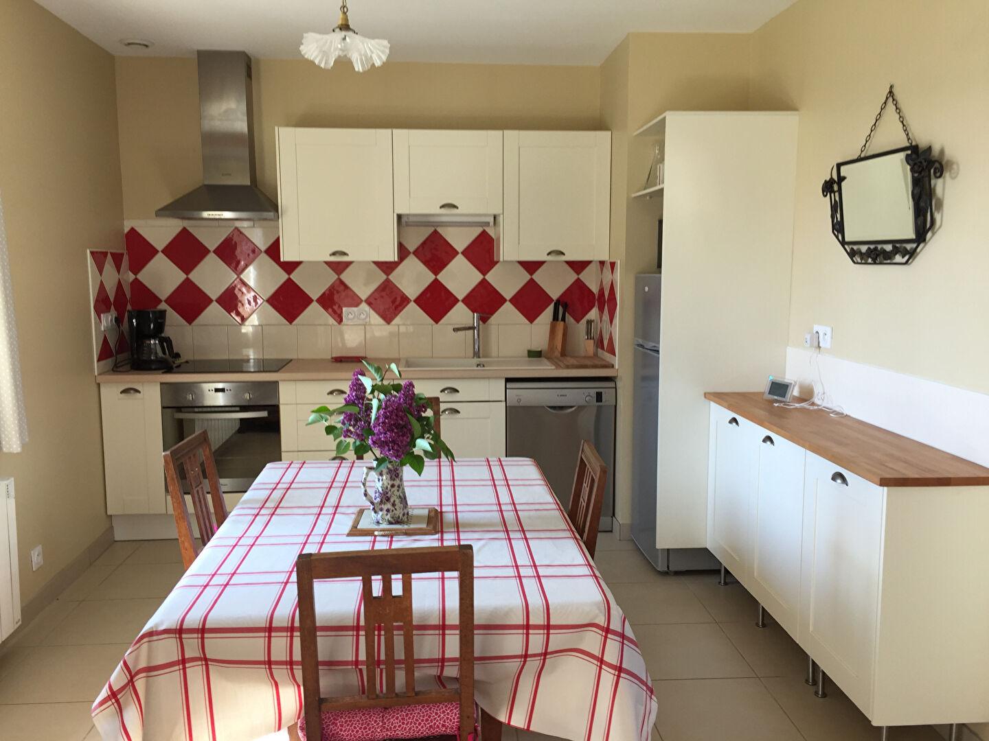 D'une cuisine aménagée et équipée, d'un salon/Salle à manger et d'une salle d'eau avec WC.